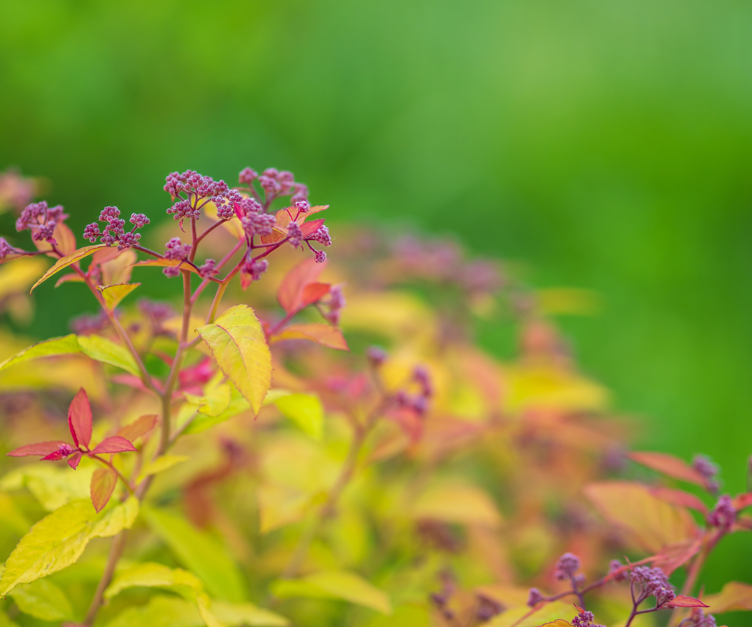 « Double Play » est une série de variétés à floraison continue et aux couleurs exceptionnelles, tant au niveau des fleurs que des feuilles en automne. « Pink Sparkler » appartient à la série Birchleaf, dont les feuilles ont la forme de celles d’un bouleau. Celle-ci a des fleurs roses qui fleurissent au début de l’été et à nouveau en automne. « Little Spark » est une variété plus petite avec de nouvelles pousses orange qui mûrissent en feuilles jaunes contrastant avec des fleurs rose foncé.