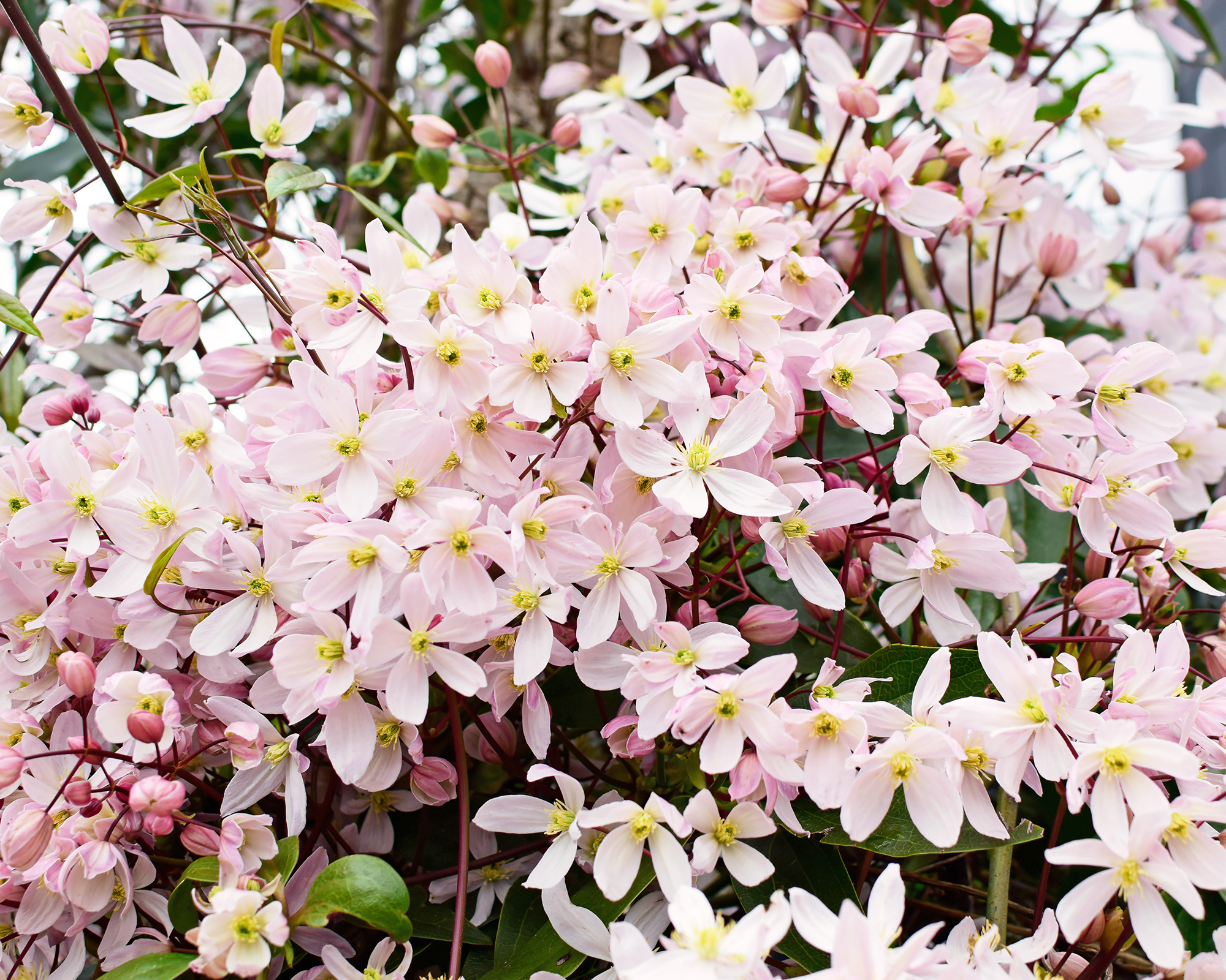 La clématite à feuilles persistantes pousse de manière assez agressive et peut grimper jusqu’à 9 mètres de haut. Cependant, vous pouvez facilement la maintenir à une taille raisonnable en la taillant régulièrement après la floraison.