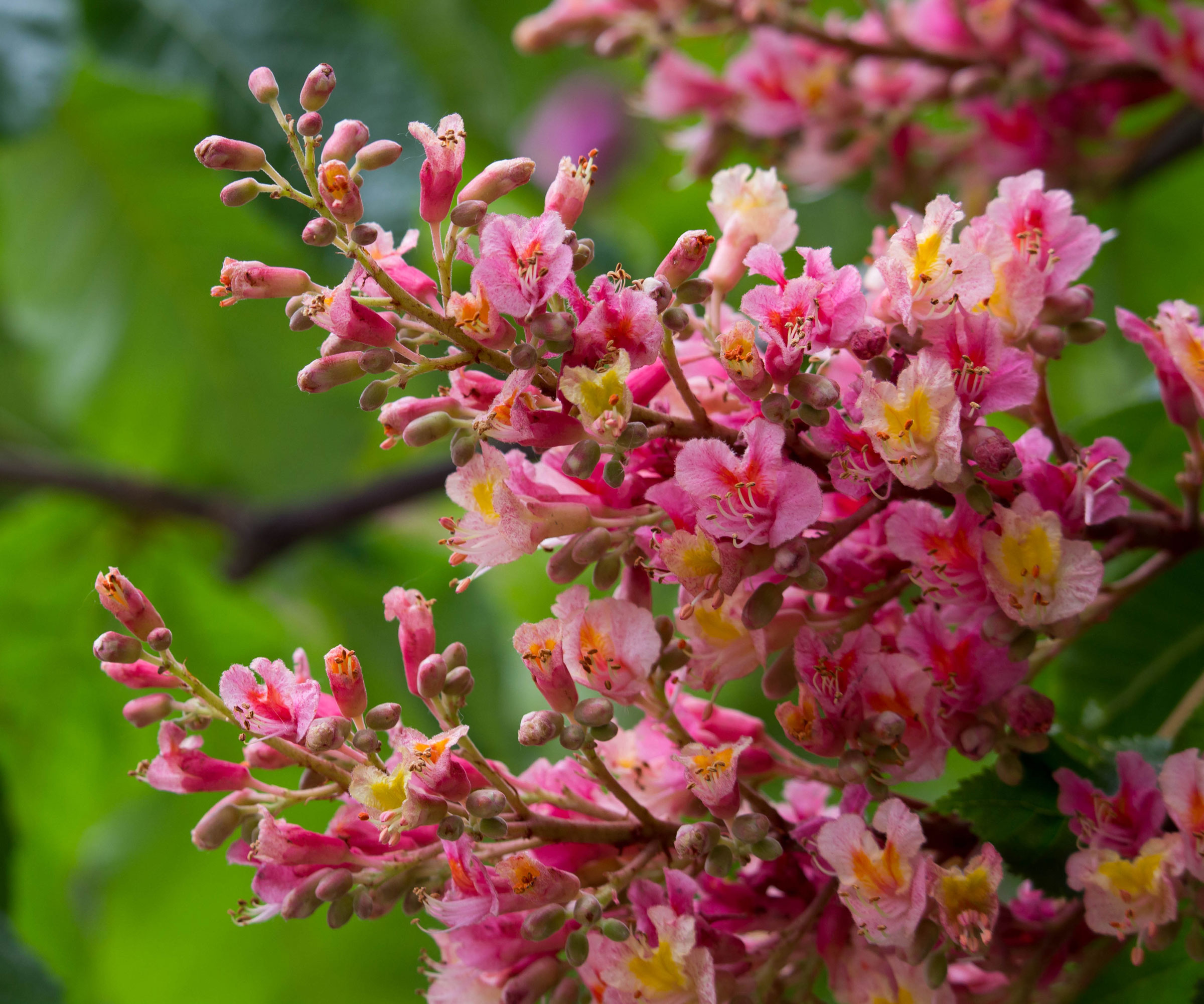 Si vous n’avez jamais vu un buckeye rouge en fleur, vous allez vous régaler ! Ce magnifique arbre à feuilles caduques bourgeonne tôt, puis offre ses fleurs printanières, qui sont d’énormes panicules de superbes fleurs magenta.