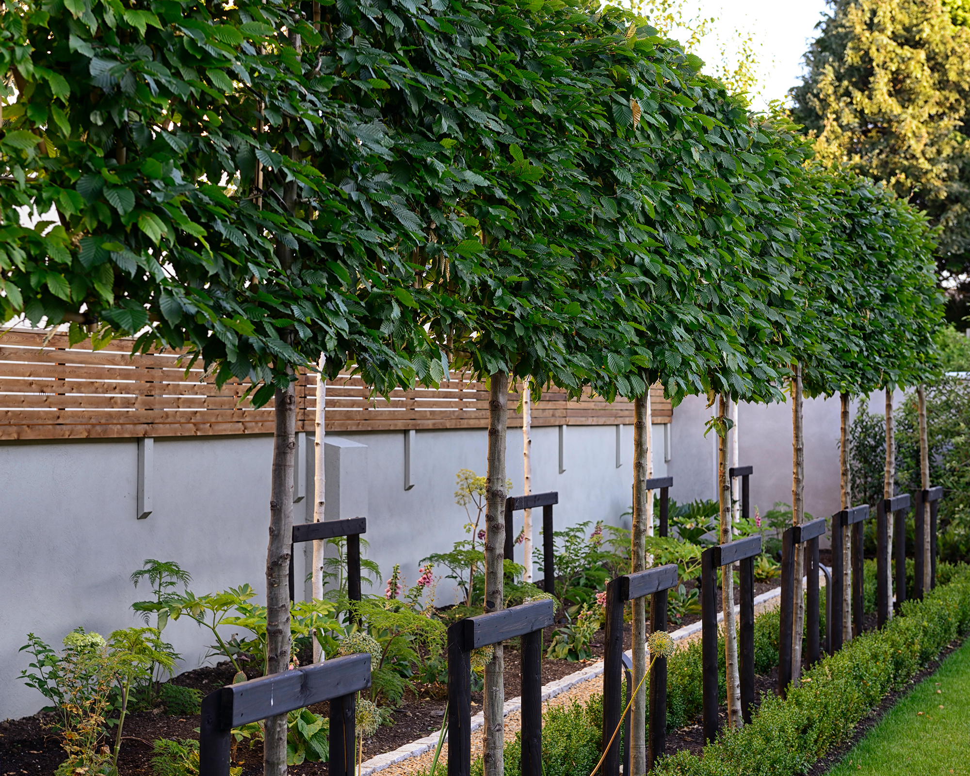 Le charme d’Amérique pousse lentement et a besoin d’espace. Mais quel arbre magnifique ! Il a une écorce bleu-gris, un tronc haut et une canopée étroite. Il est donc idéal pour être planté en rangées le long d’une clôture.