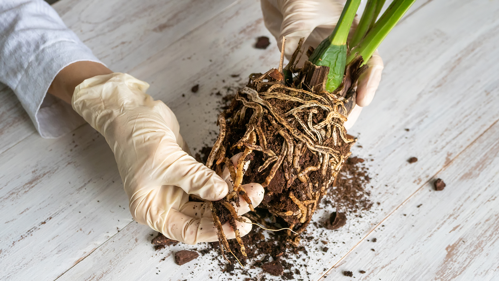Pour diagnostiquer avec certitude la pourriture des racines, il faudra retirer la plante de son pot et inspecter les racines. Elles doivent être fermes et vertes si elles sont bien arrosées et en bonne santé. Dans les plantes sèches, les racines auront une teinte grisâtre