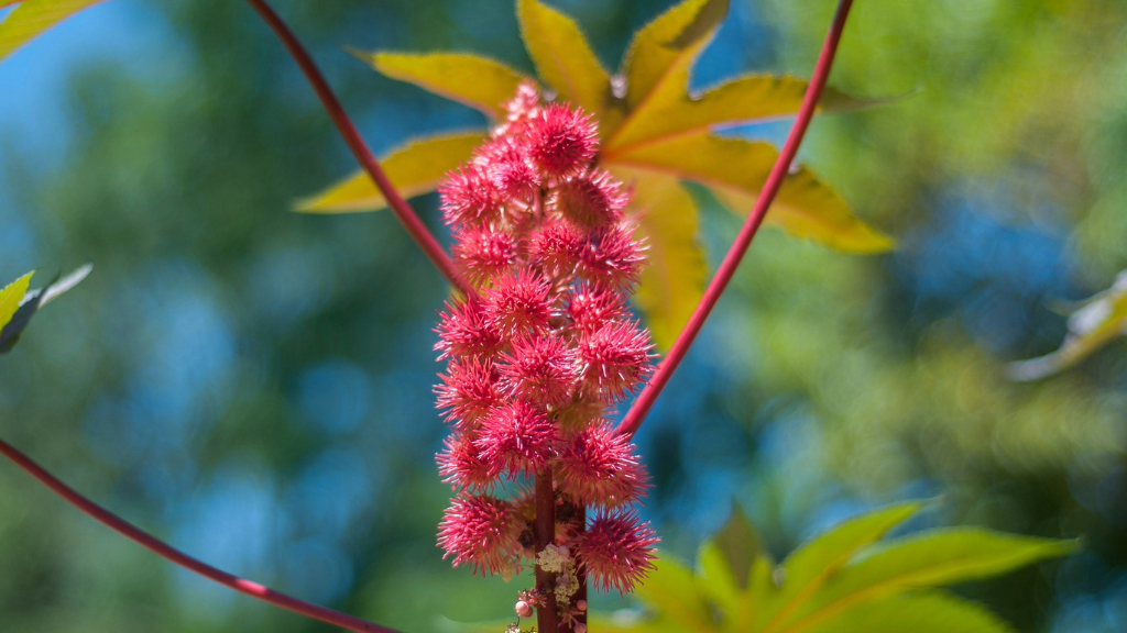 L’histoire du ricin est longue. Si vous vous procurez un exemplaire du catalogue de 1896 de la maison de semences R. & J. Farquars, vous y trouverez de nombreuses variétés de ricin. En fait, cette plante était cultivée dans les jardins anglais depuis au moins le XVIe siècle. Et les anciens Égyptiens la cultivaient il y a plus de 4 000 ans. Ils l’utilisaient comme source d’huile de ricin qu’ils brûlaient dans des lampes. Dans ce pays, les ricins étaient également cultivés pour produire de l’huile de ricin. L’armée américaine utilisait cette huile dans les lubrifiants pour avions ainsi que dans la fabrication d’explosifs. Les Américains utilisaient également l’huile de ricin dans la fabrication de savons, de linoléum, de nylon, de peintures et d’isolants électriques. C’était également un médicament populaire dans la première moitié du XXe siècle.