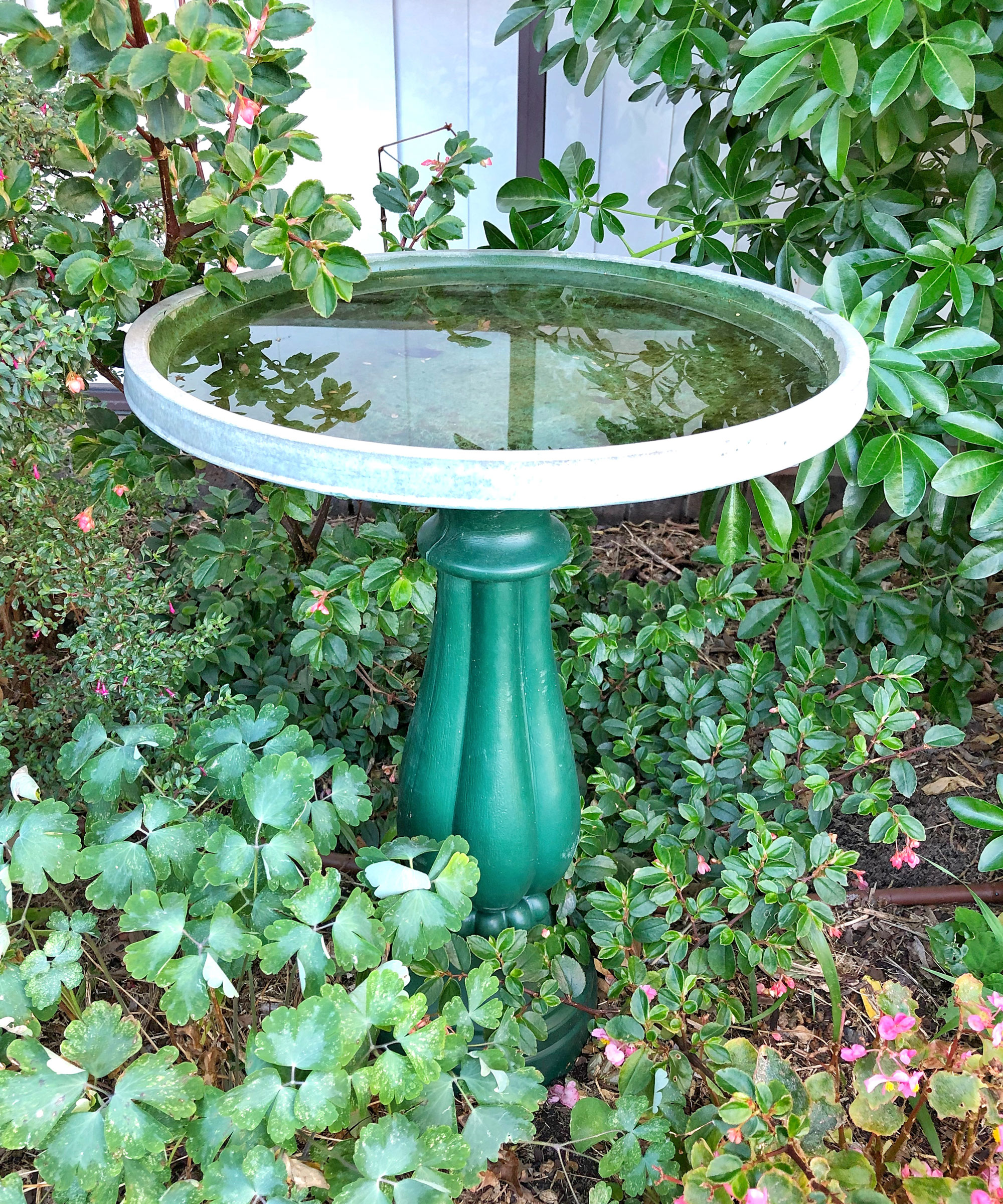 À l’inverse, si votre bain d’oiseaux est exposé directement au soleil, cela peut causer d’autres problèmes, tels que l’évaporation accélérée, la surchauffe et la prolifération d’algues. Il s’agit de trouver le juste équilibre : vous devez être attentif aux prédateurs, mais vous devez également veiller à ce que vos petits hôtes restent au frais et à l’abri. De plus, les oiseaux sont moins susceptibles de visiter les bains au sol ou les bains placés sur des plates-bandes surélevées où les chats peuvent prendre le soleil. Si le vôtre se trouve juste devant une fenêtre de terrasse et que vous vous demandez ce qui se passe, il est temps de repenser votre installation.