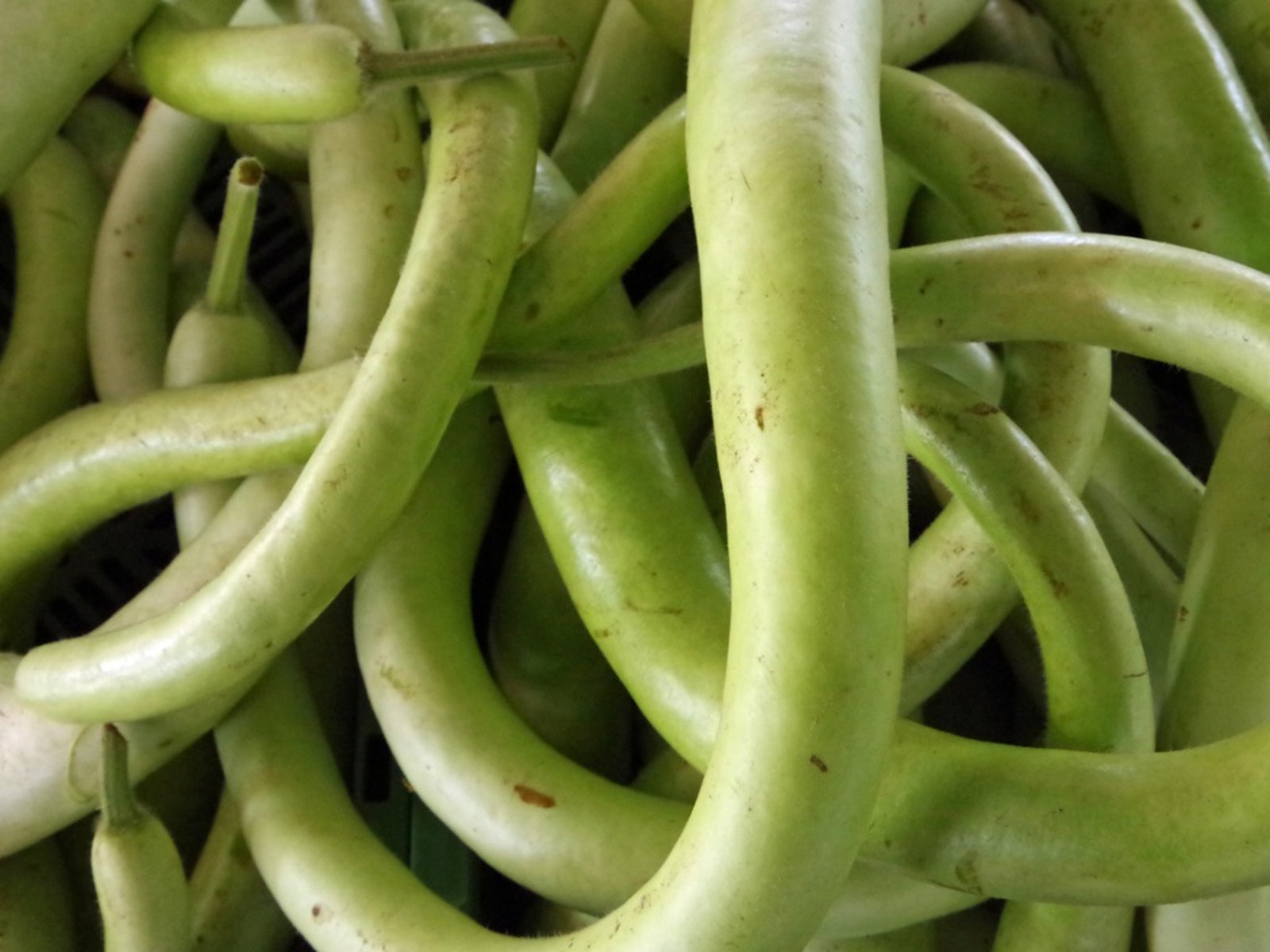 Le timing est essentiel pour récolter les courges Cucuzza. C’est comme pour les courgettes. Un jour, le fruit mesure quelques centimètres (5 cm) de long et deux jours plus tard, il mesure 61 cm (et encore, si vous l’avez vu). Avec ses grandes feuilles ombragées et ses fruits verts, la courge Cucuzza, tout comme la courgette, a tendance à cacher le fruit de son travail. Il faut donc regarder attentivement et tous les jours. Plus ils sont gros, plus ils sont difficiles à manipuler, la taille idéale étant donc de 20 à 25 cm de long. De plus, les fruits plus jeunes et plus petits ont des graines plus tendres, qui peuvent être laissées à l’intérieur, cuites et consommées.