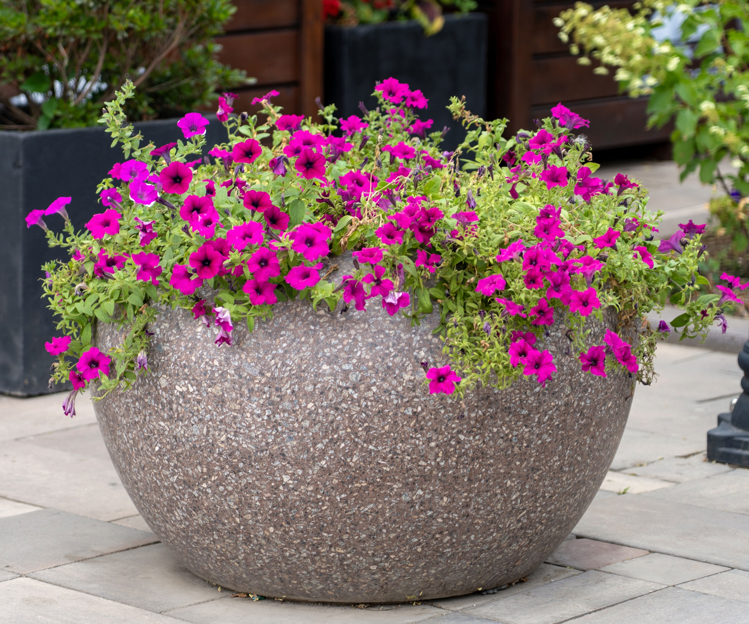 Les pétunias sont des plantes annuelles classiques qui aiment le soleil et poussent particulièrement bien en pot. Les variétés grimpantes sont très jolies dans les paniers suspendus et les jardinières et peuvent rapidement remplir d’un kaléidoscope de couleurs un patio relativement calme.
