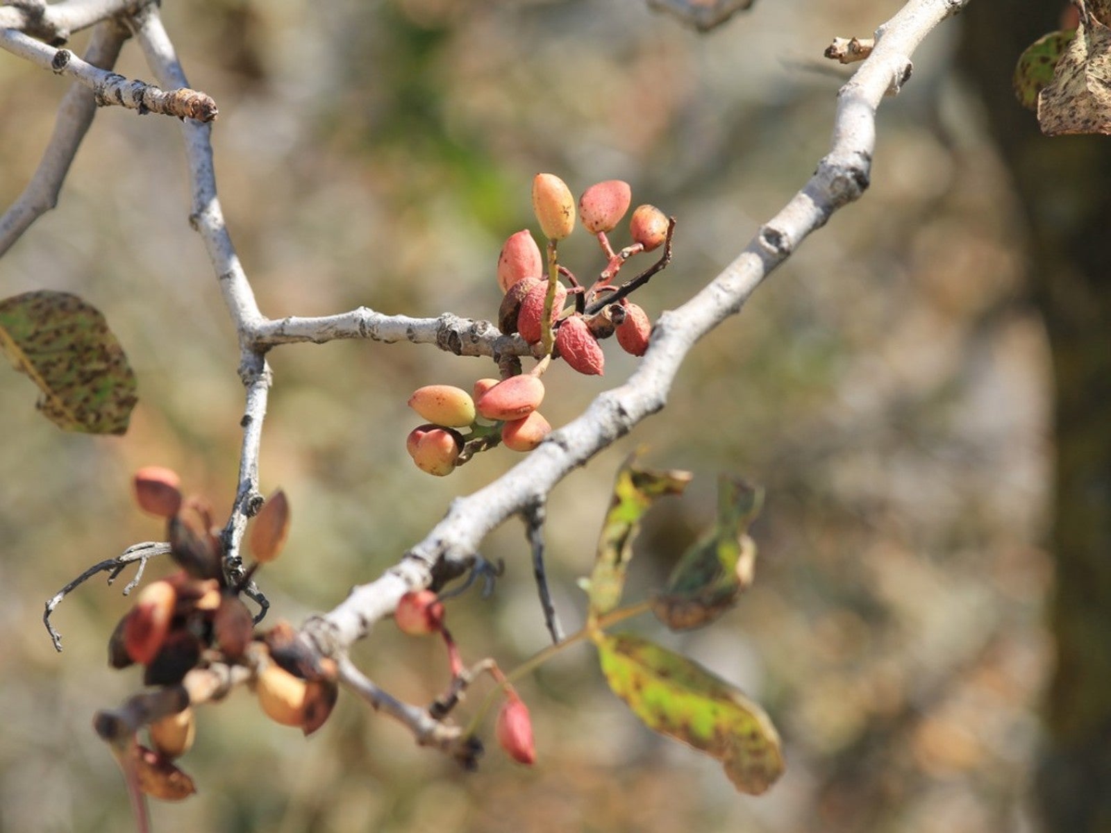 • Dépérissement du pistachier (Xanthomonas translucens) — Pénétrant par les blessures, les symptômes de cette maladie bactérienne comprennent des lésions noires fuligineuses sur les branches et le tronc du pistachier.