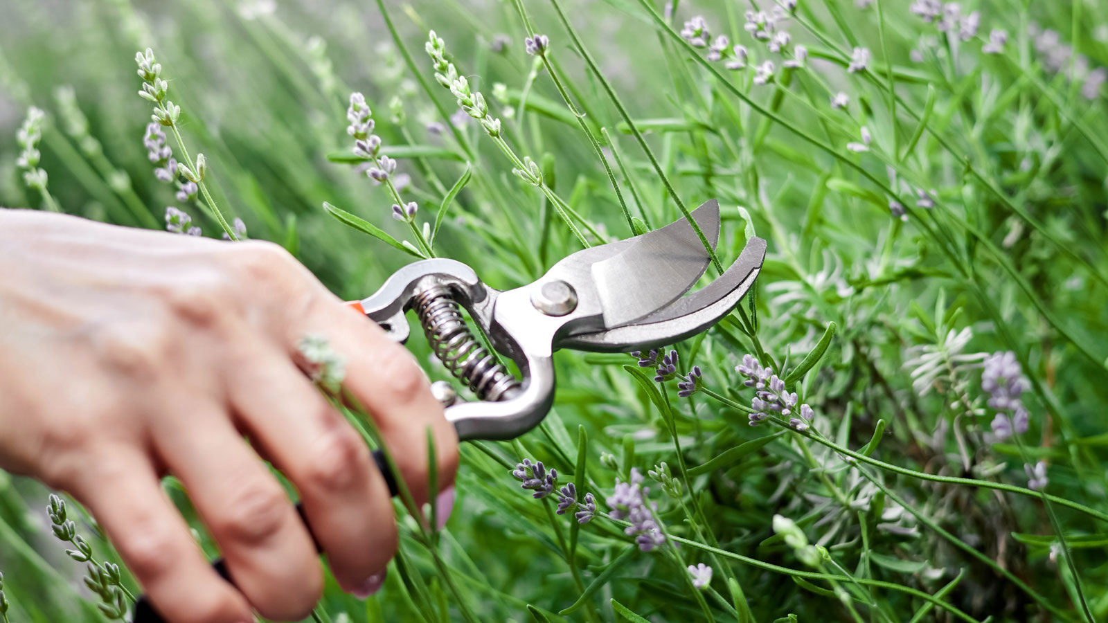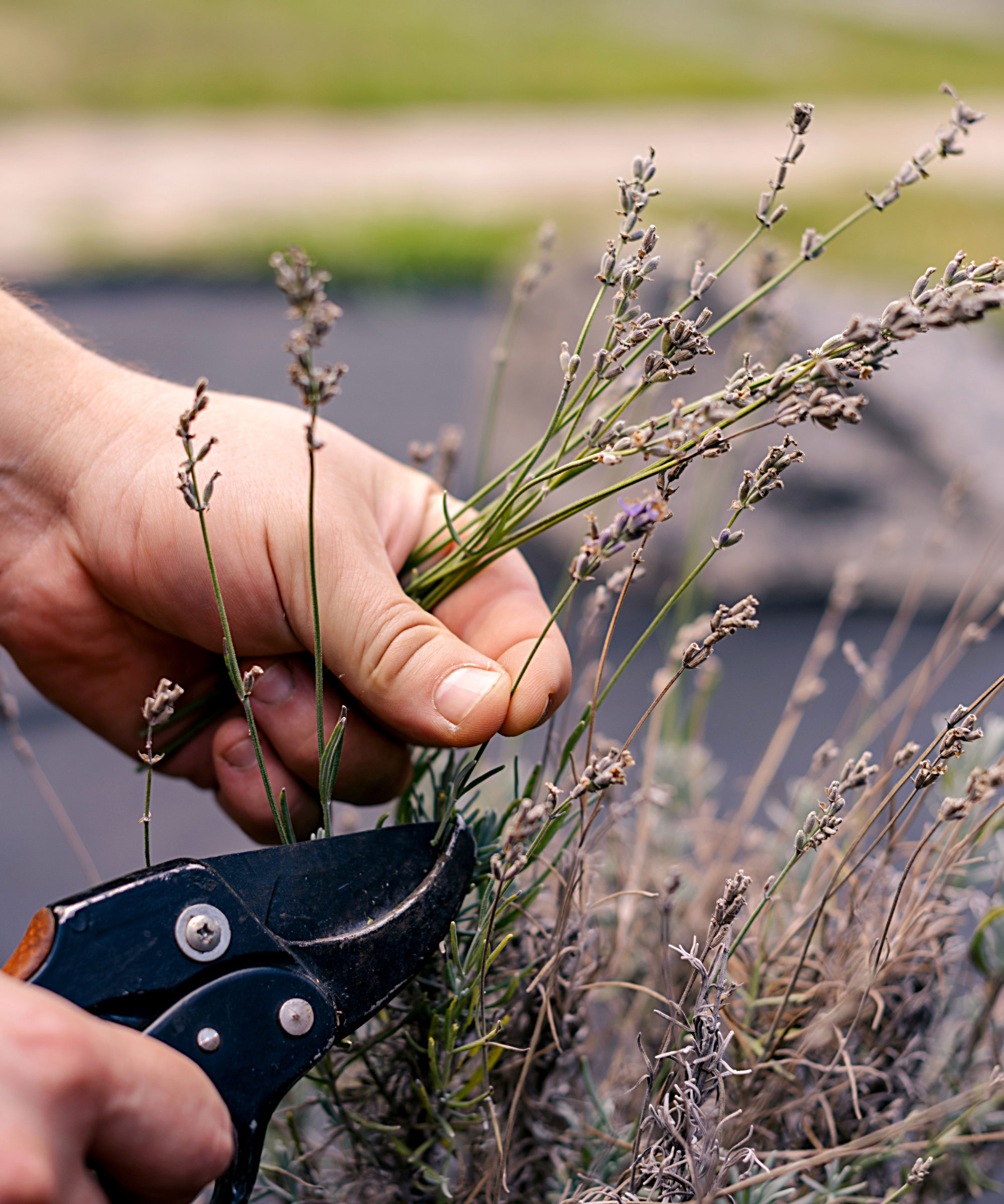 Il s’agit de créer une forme plus arrondie et compacte et d’éliminer les tiges abîmées et trop longues, les branches mortes et les tiges florales restantes. L’objectif est de donner à la lavande, qu’elle soit en pot, en parterre ou en bordure, les meilleures chances de ralentir sa croissance de manière saine à l’approche de la dormance.