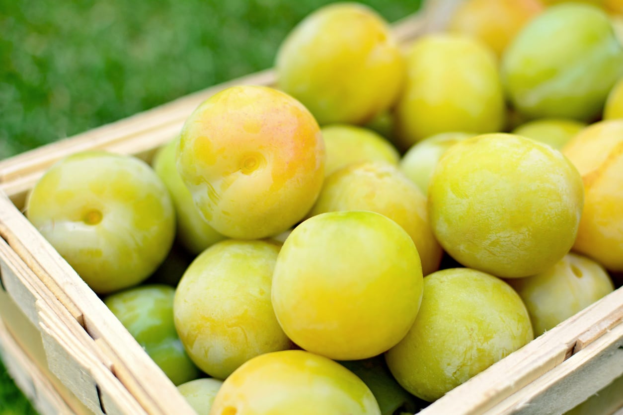 Les prunes Gage, également connues sous le nom de greengage, sont des variétés de prunes européennes qui peuvent être consommées fraîches ou en conserve. Leur couleur peut varier du jaune et du vert au rouge et au violet. La prune Early Transparent Gage est une prune jaune avec une jolie teinte rouge. Elle convient à tous les types de consommation et est facile à cultiver par rapport à des variétés similaires.