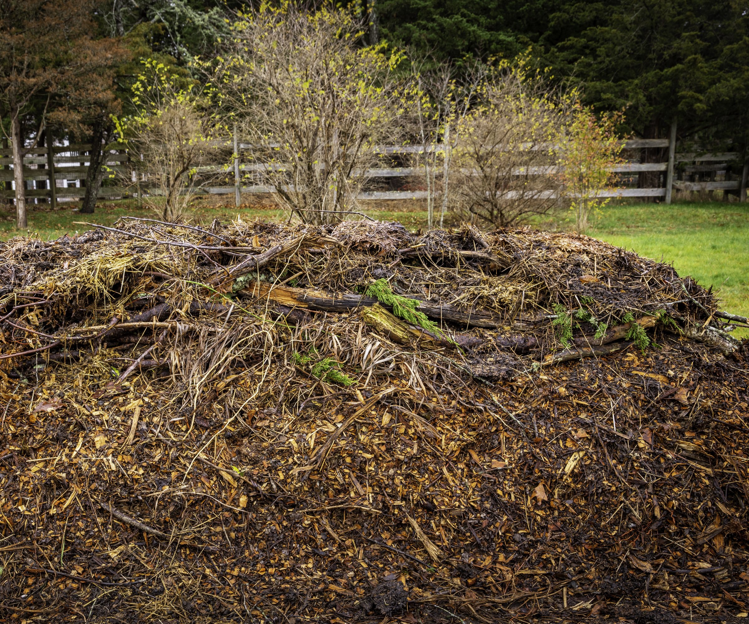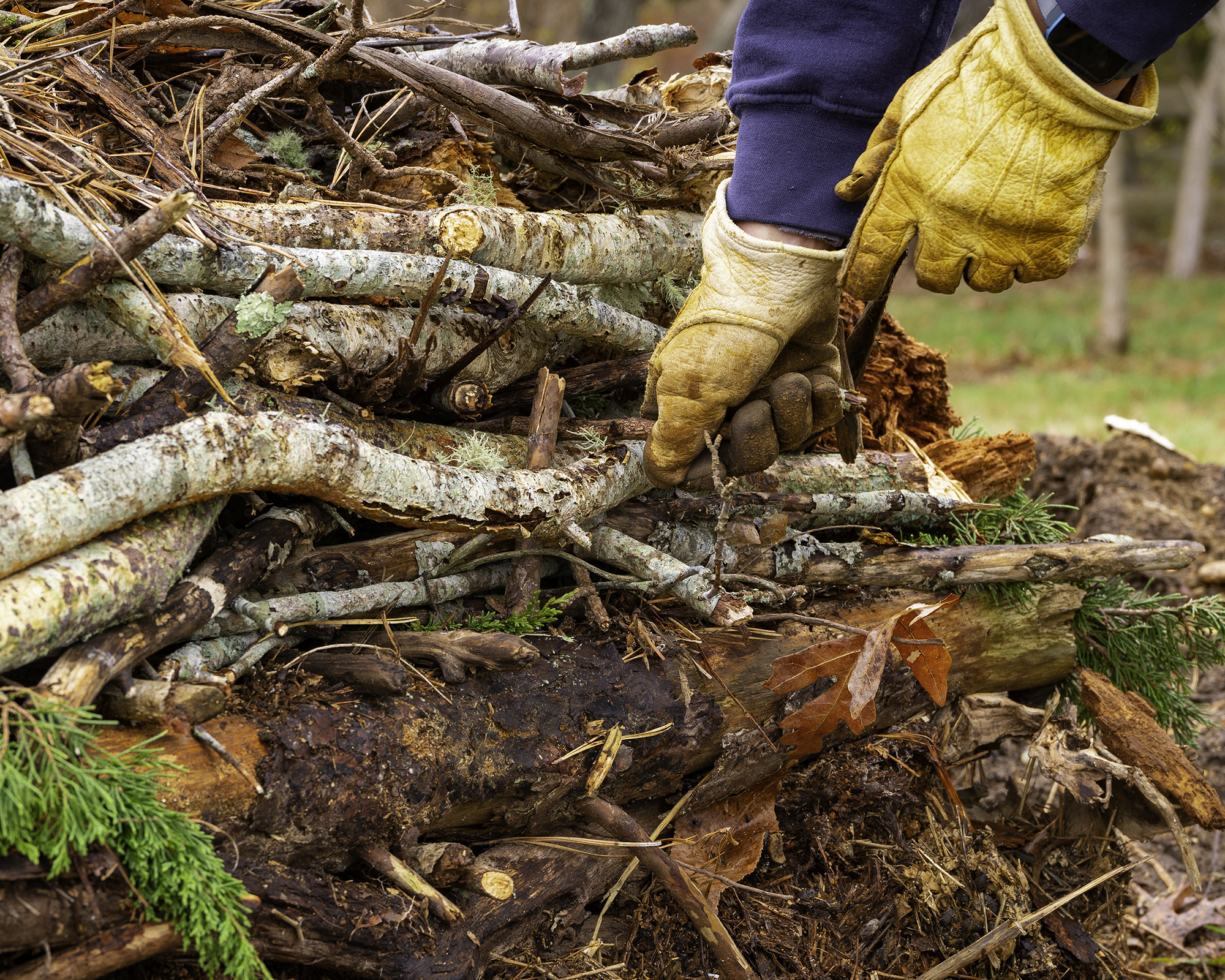 När du bygger högen, lägg på jord och annat organiskt material om det finns tillgängligt. Fortsätt stapla tills du har en brant hög i önskad storlek.