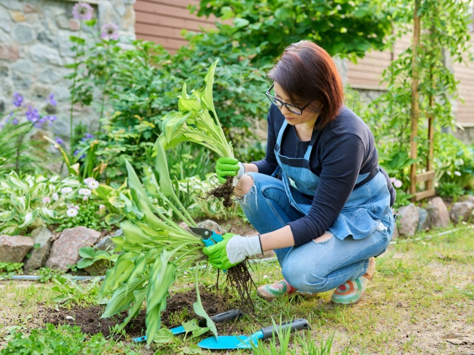 Följ samma procedur som för hostorna. Gräv runt rudbeckiaens droppgräns, men se till att skära av den utlöpare som förbinder den nya klumpen med huvudplantan. Om den fortfarande syns ovan jord kan du klippa av den med en ren trädgårdssax.