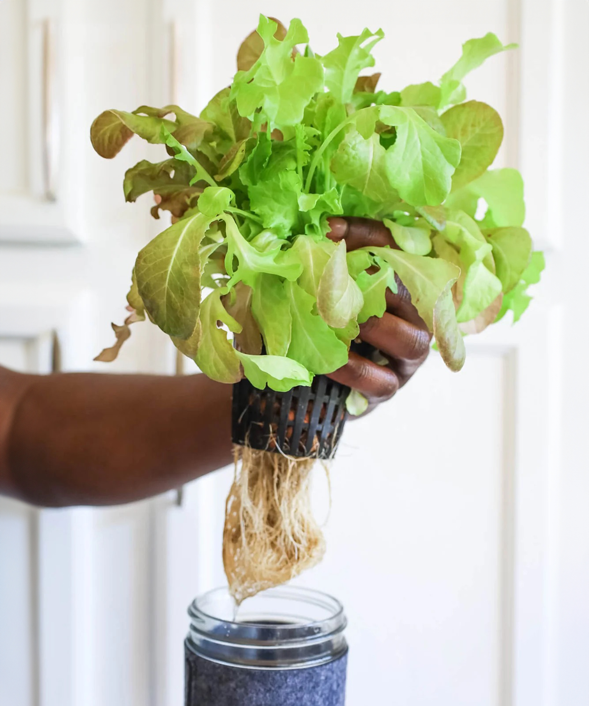 Du kommer att upptäcka att bladen på din hydroponiskt odlade sallad är klara att skördas efter cirka fyra veckor. Men innan du tar bort hela plantan från masonburken måste du veta att det finns ett knep för att få plantan att fortsätta producera i många veckor till, genom att skörda salladsbladen efterhand som de växer ut.Ta bara bort den yttre bladringen efter behov och låt de mindre inre bladen fortsätta växa. Skala dem försiktigt av plantan eller använd en vass sax för att klippa av de blad du behöver för dagen. Upprepa detta med några dagars mellanrum. Bladsallat är verkligen en gåva som fortsätter att ge.