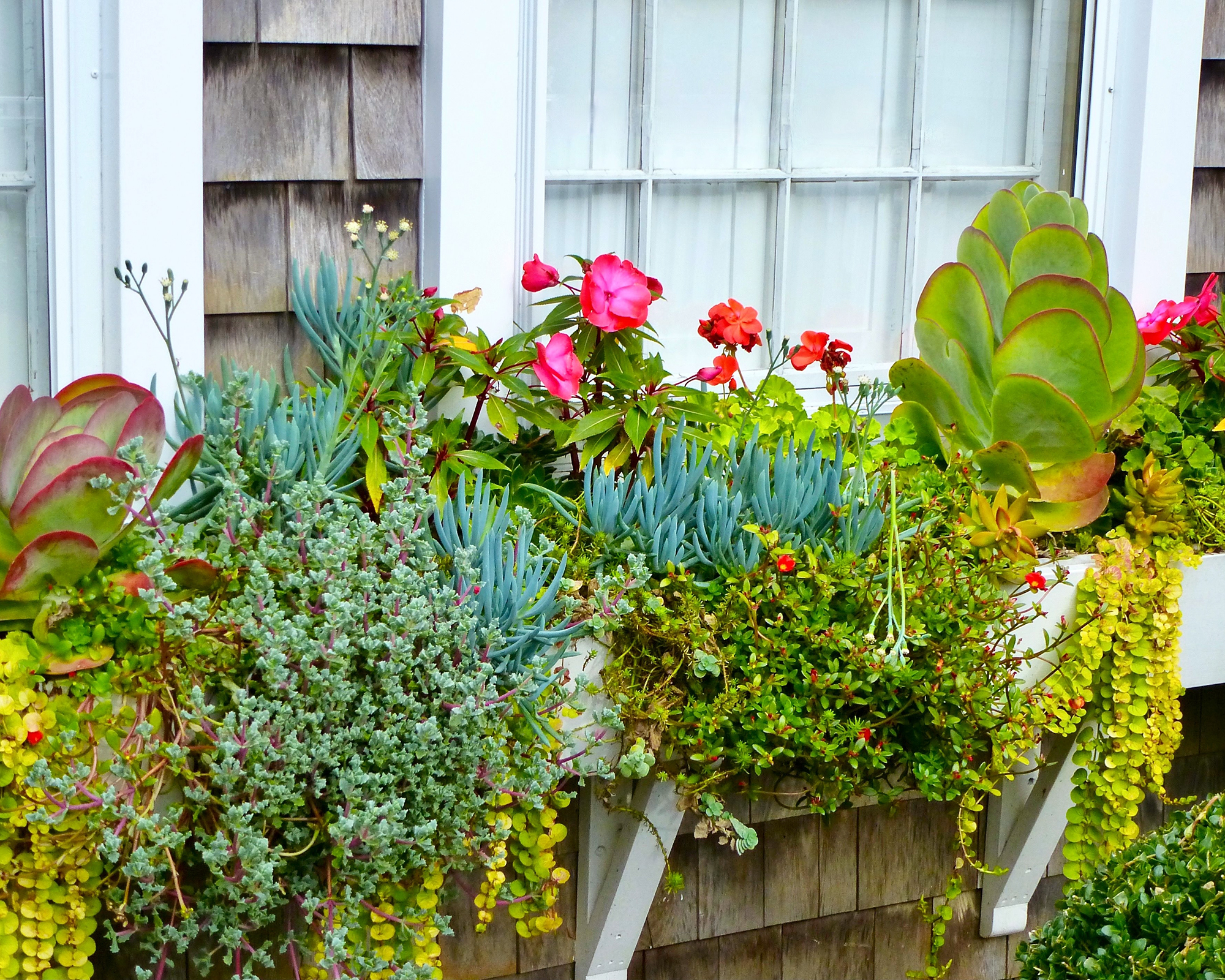 Mentre le fioriere sono tradizionalmente considerate una vetrina per i fiori, le piante grasse offrono un’esposizione vivace e invitante.