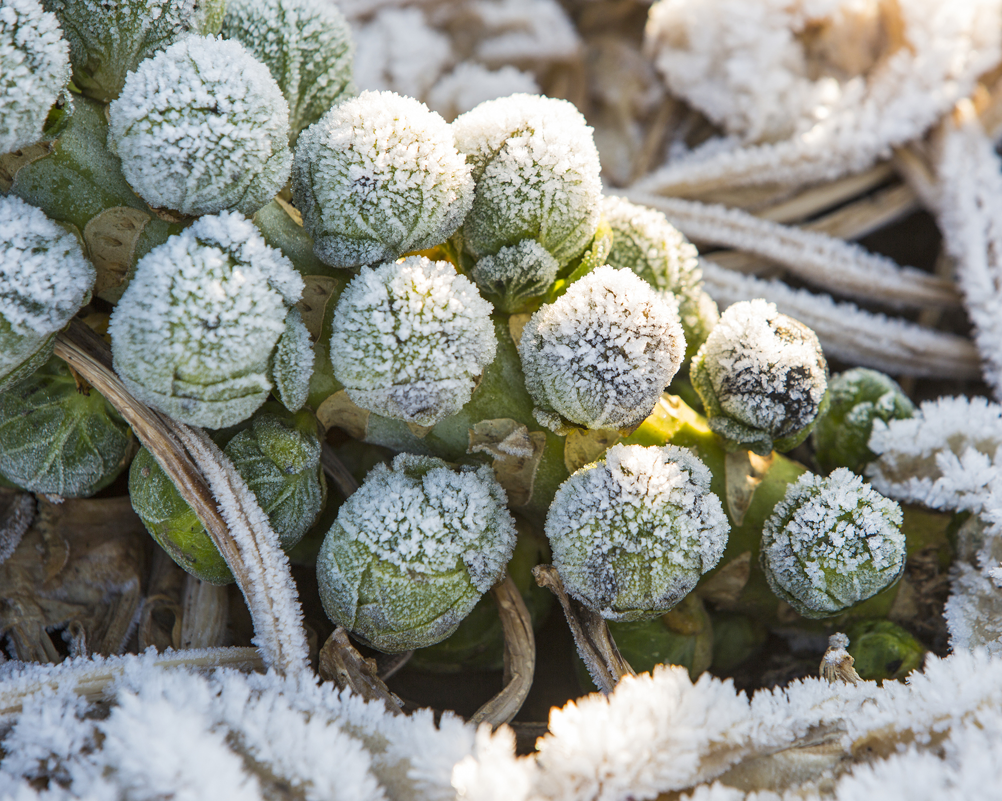 Ricoprite i cavolini di Bruxelles con foglie, paglia o pacciame e raccoglieteli durante tutto l’inverno. Utilizzate coperture per proteggere le piante semi-resistenti, tra cui porri, cavolfiori e cavoli rapa. Moriranno se esposte ripetutamente al freddo, ma una copertura può prolungarne la vita, consentendo un periodo di raccolta più lungo.