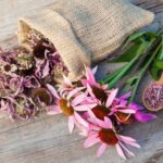 Per la maggior parte, pianto tenendo a mente gli impollinatori e accolgo la fauna selvatica nel mio giardino. Qui c’è un mix di piante autoctone e fiori selvatici, oltre a piante commestibili intrecciate tra loro. Piuttosto che un tradizionale orto o un giardino di erbe aromatiche, la maggior parte delle mie piante crescono tra i fiori. E ci sono anche contenitori ovunque, molti dei quali sono unici. Ho piante che crescono in pneumatici, monitor di computer, teiere, giocattoli, stivali, borse, cassetti e altro ancora.