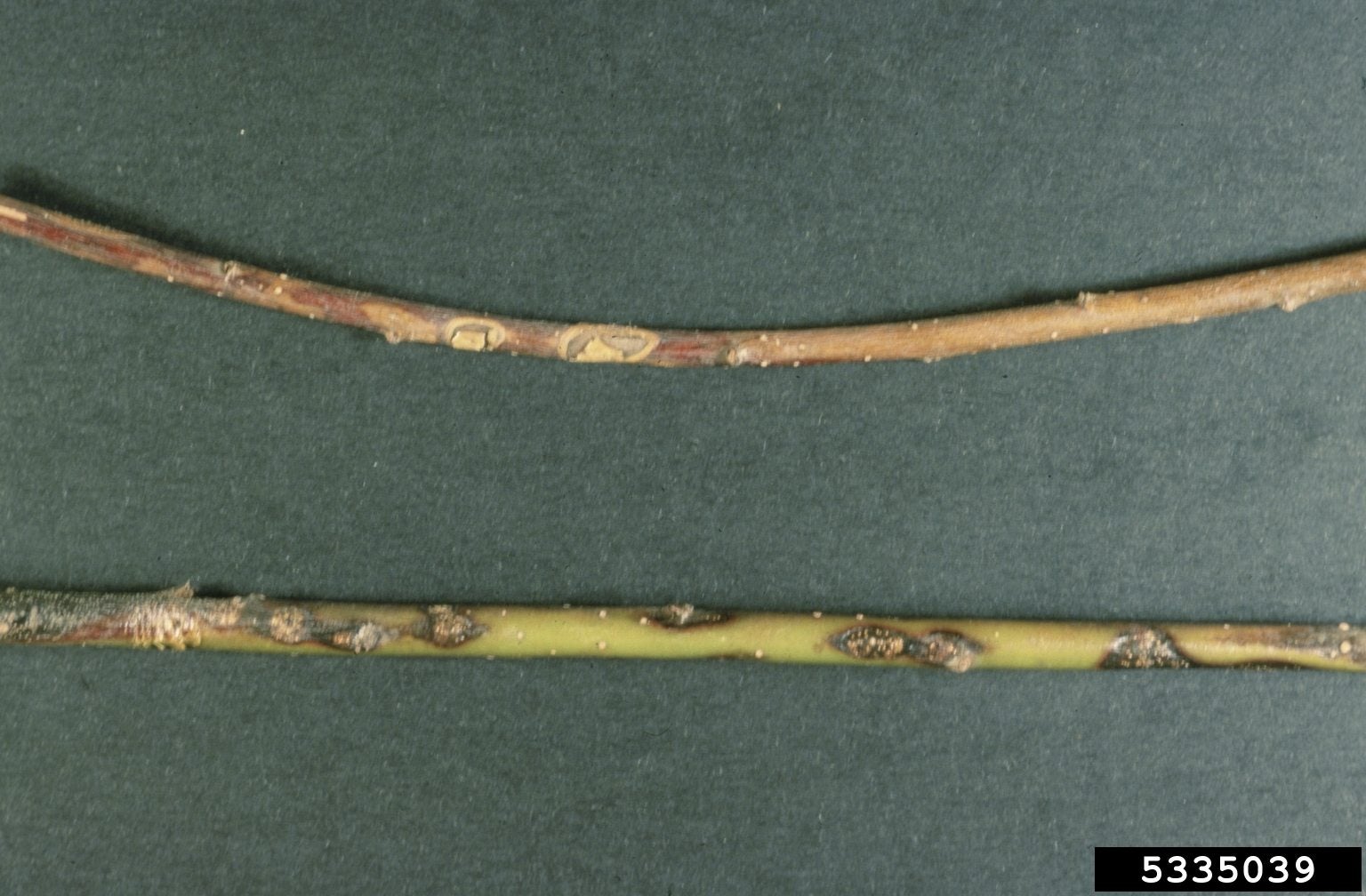 Il cancro nero è causato dal fungo Glomerella miyabeana. Nei salici, spesso accompagna la ticchiolatura. Le foglie che sviluppano macchie di forma irregolare sono il primo segno che un albero potrebbe essere affetto da cancro nero. Le macchie compaiono in tarda primavera o all’inizio dell’estate e l’albero sembra per il resto normale. A questo punto i proprietari degli alberi difficilmente notano il problema, anche se le foglie infette possono avvizzire. I cancri si formano nel punto in cui il picciolo della foglia si attacca al ramoscello alla fine dell’estate e, con il progredire della malattia, si trovano cancri dove i ramoscelli si attaccano ai gambi e ai rami. I cancri possono eventualmente formarsi sul gambo principale o sul tronco. In autunno, dalle ferite fuoriesce una sostanza appiccicosa, rosata e dall’aspetto vellutato che contiene spore. Le spore vengono trasportate in diverse parti dell’albero e agli alberi circostanti dagli insetti. La dimensione del cancro dipende dalla resistenza naturale dell’albero. Il primo anno, possono avere un diametro di soli 2,5 cm sugli alberi resistenti, o più di 7,5 cm sugli alberi particolarmente sensibili. Ogni anno le aree di corteccia morta intorno ai cancri diventano più grandi, ma la malattia non uccide l’albero a meno che più cancri non convergano fino a circondare completamente il tronco.