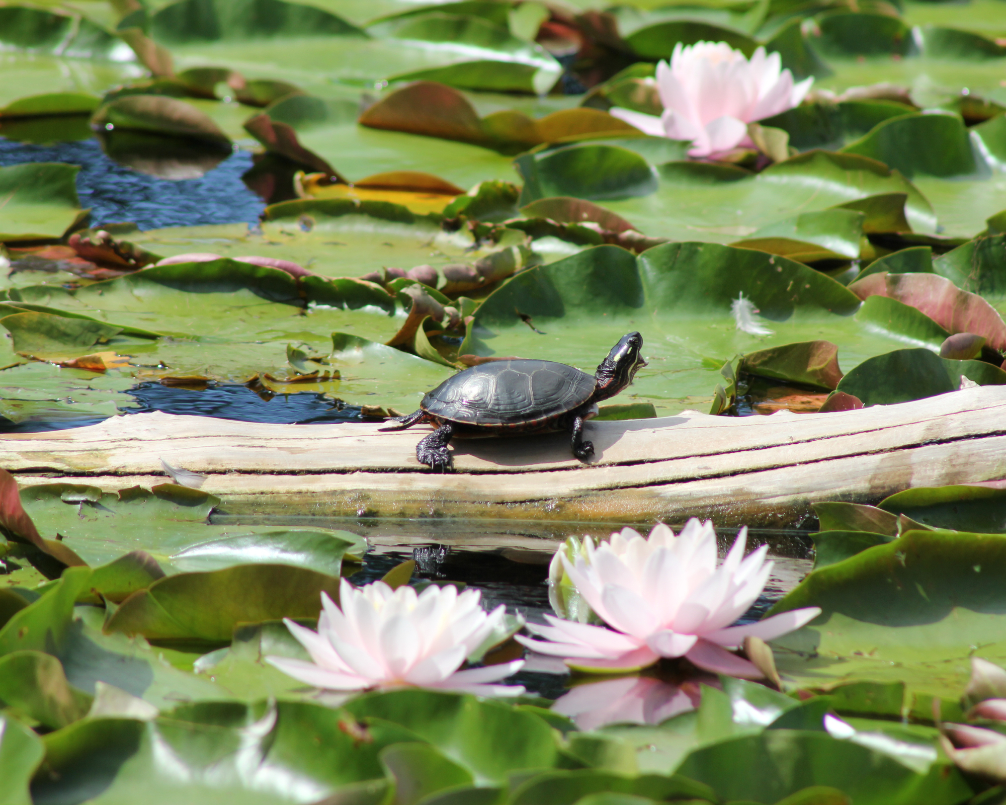 Un modo semplice per attirare tartarughe e altri animali selvatici nello stagno è quello di includere affioramenti rocciosi o aggiungere tronchi e rami semisommersi ai bordi dello stagno. Tartarughe, rane e serpenti useranno queste strutture per prendere il sole, riprodursi, proteggersi e procurarsi il cibo. Includete almeno una lastra piatta, inclinata verso la superficie dell’acqua, per consentire agli anfibi di entrare e uscire.