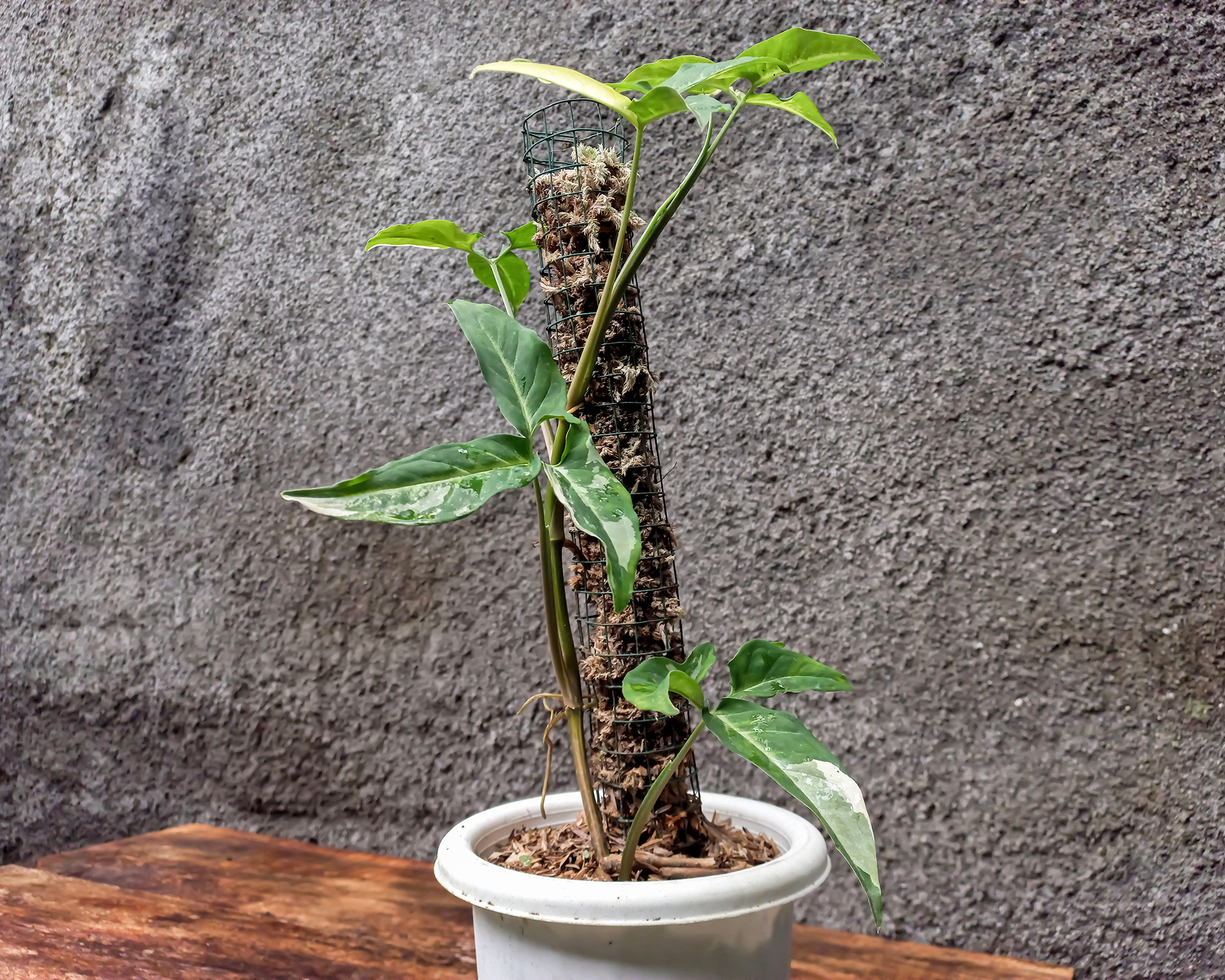 Per rampicanti più grandi o più vigorosi, come una monstera matura o un filodendro rampicante, potreste voler potenziare il vostro palo di muschio con una versione più consistente. Utilizzando una rete rivestita in PVC, puoi creare un palo più spesso: