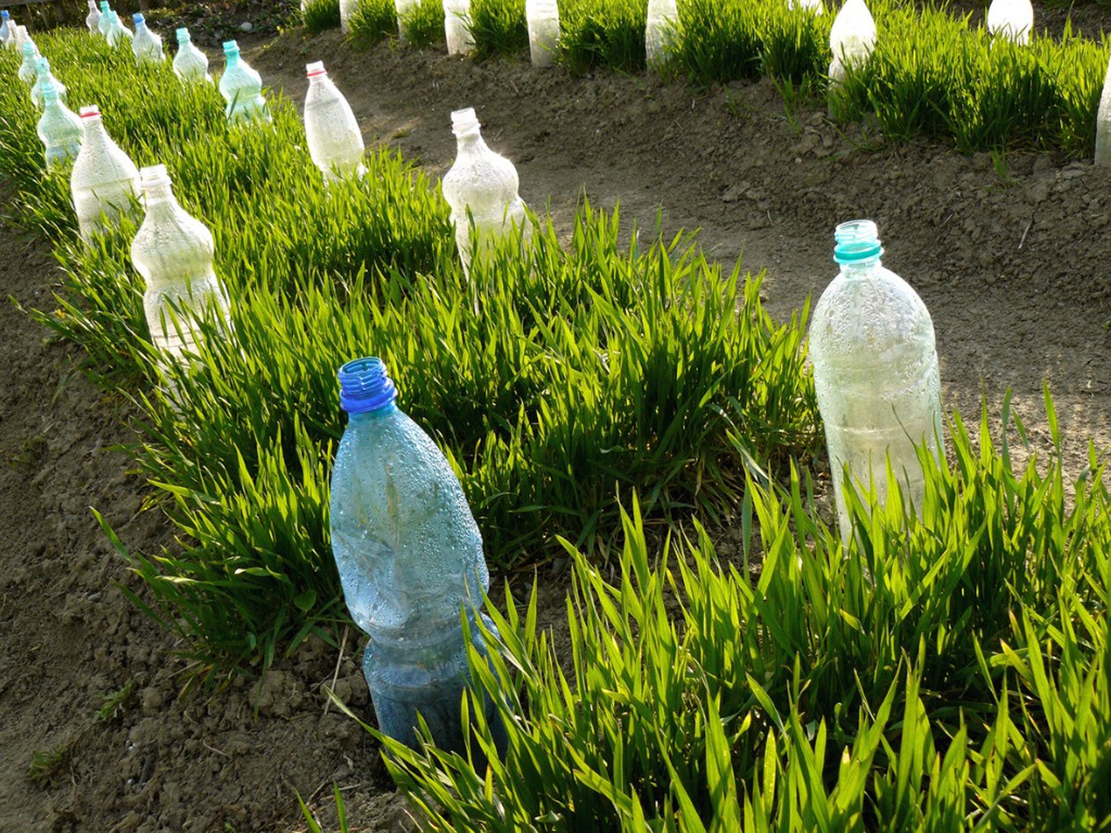 - Bottiglie auto-irriganti — Ecco due metodi semplici ed economici per creare dei sistemi di auto-irrigazione fai da te per il tuo giardino. Questo è particolarmente utile se devi assentarti per qualche giorno, sei in vacanza o sei smemorato. Riempi una vecchia bottiglia di vino con acqua e mettila capovolta nel tuo orto. L’acqua fuoriesce lentamente e mantiene il terreno umido. Allo stesso modo, puoi usare una bottiglia d’acqua o di soda con dei fori praticati sul fondo e piantarla accanto alle tue verdure. Versa l’acqua nella bottiglia e col tempo colerà nel terreno.