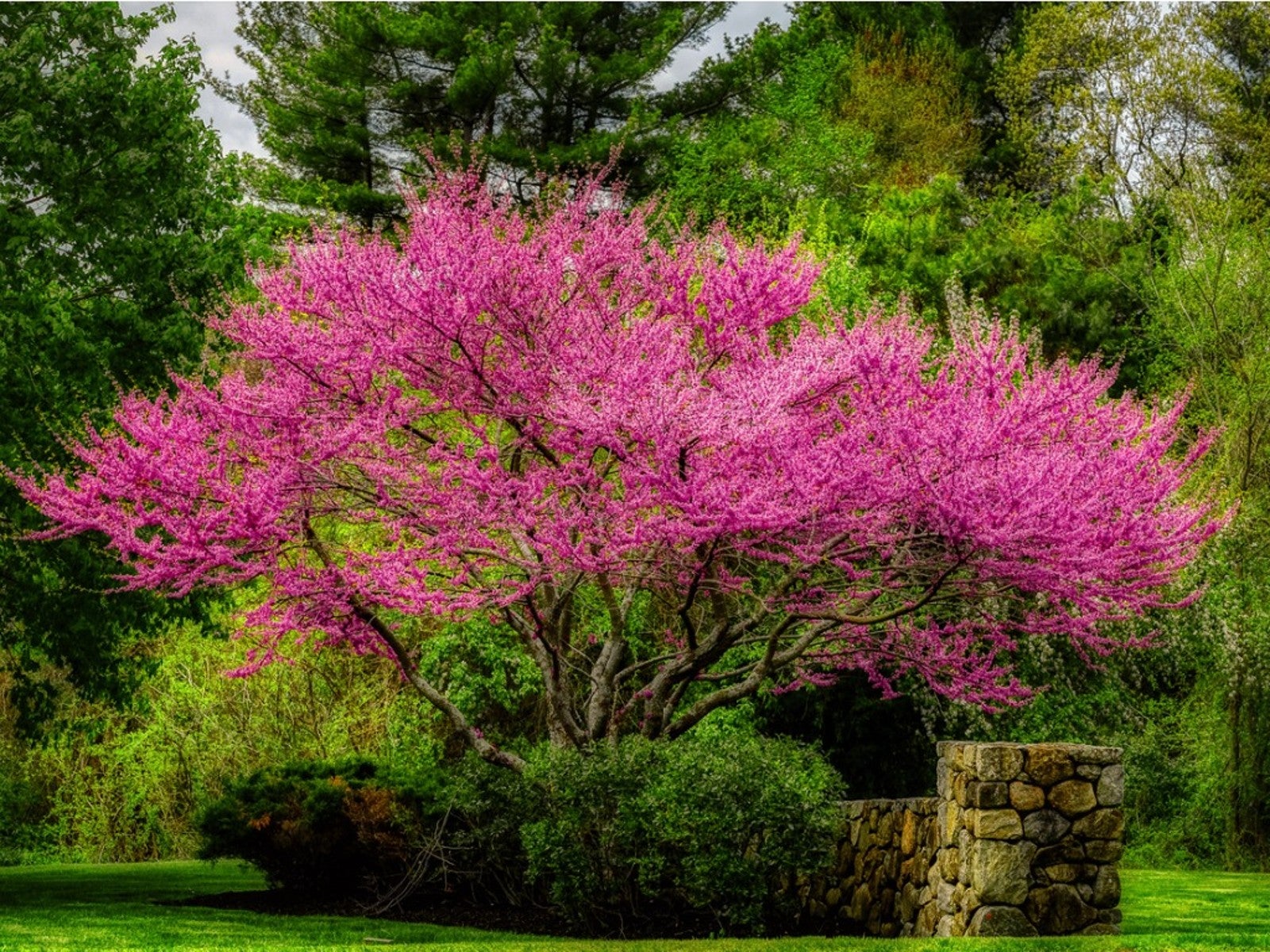 All’inizio della primavera, gli alberi di redbud illuminano la foresta con i loro magici grappoli di fiori viola-rosa simili a piselli. Appaiono sui rami spogli di questi alberi decidui all’inizio di aprile, prima che spuntino le foglie. Dopo i fiori, compaiono foglie verdi a forma di cuore.
