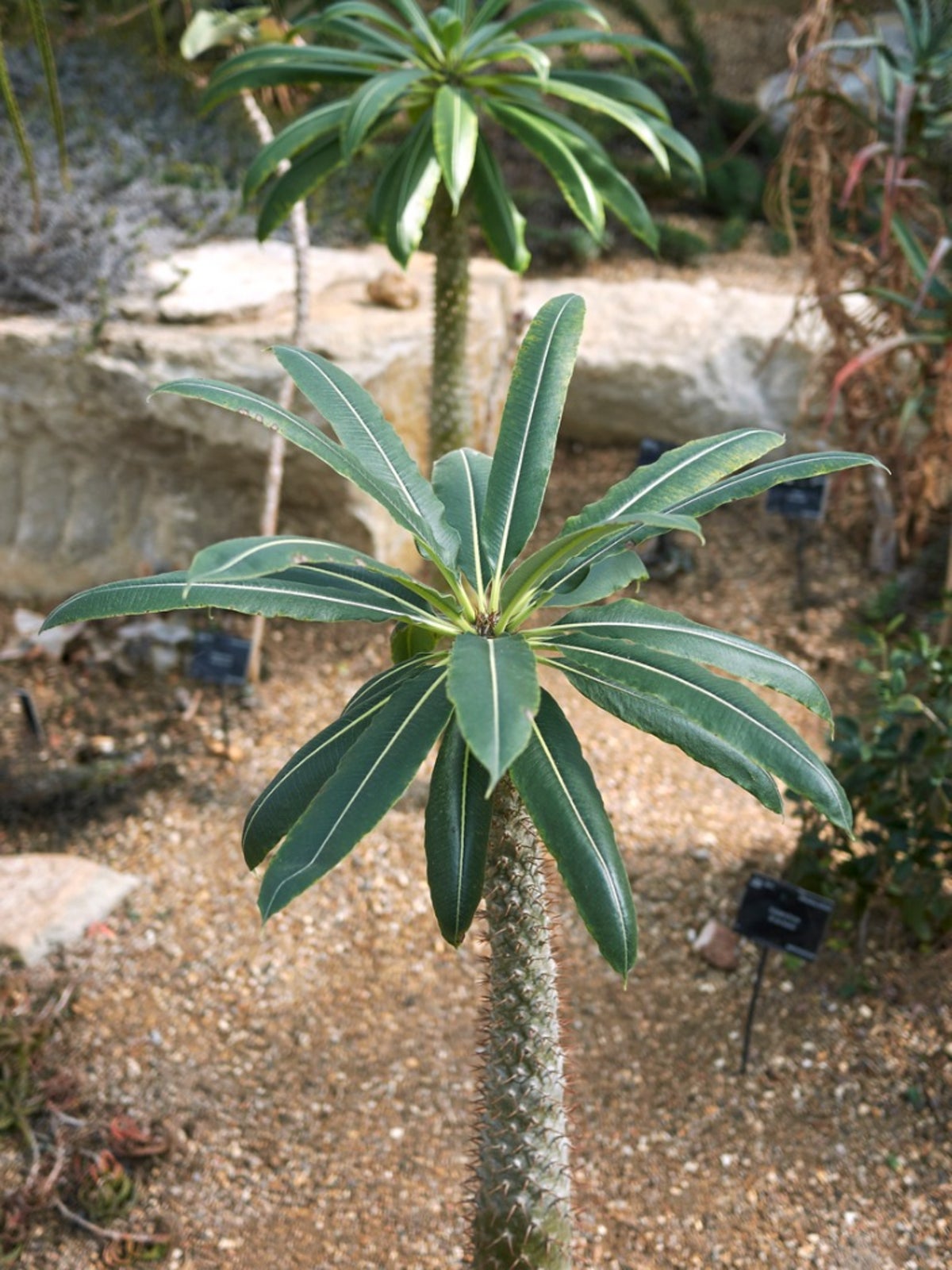 Originaria del Madagascar meridionale, la palma del Madagascar (Pachypodium lamerei) appartiene alla famiglia delle succulente e dei cactus. Anche se questa pianta ha il nome “palma”, in realtà non è affatto una palma. Le palme del Madagascar vengono coltivate nelle regioni più calde come piante da esterno e nelle zone più fredde come attraenti piante da appartamento. Scopriamo di più sulla coltivazione della palma del Madagascar in casa. Le palme del Madagascar sono piante dall’aspetto accattivante che crescono da 1 a 2 metri in casa e fino a 4,5 metri all’aperto. Il tronco lungo e sottile è ricoperto da spine eccezionalmente spesse e le foglie si formano nella parte superiore del tronco. Questa pianta sviluppa rami molto raramente, se non mai. In inverno sbocciano fiori aromatici gialli, rosa o rossi. Le palme del Madagascar sono un’aggiunta eccellente a qualsiasi stanza soleggiata.