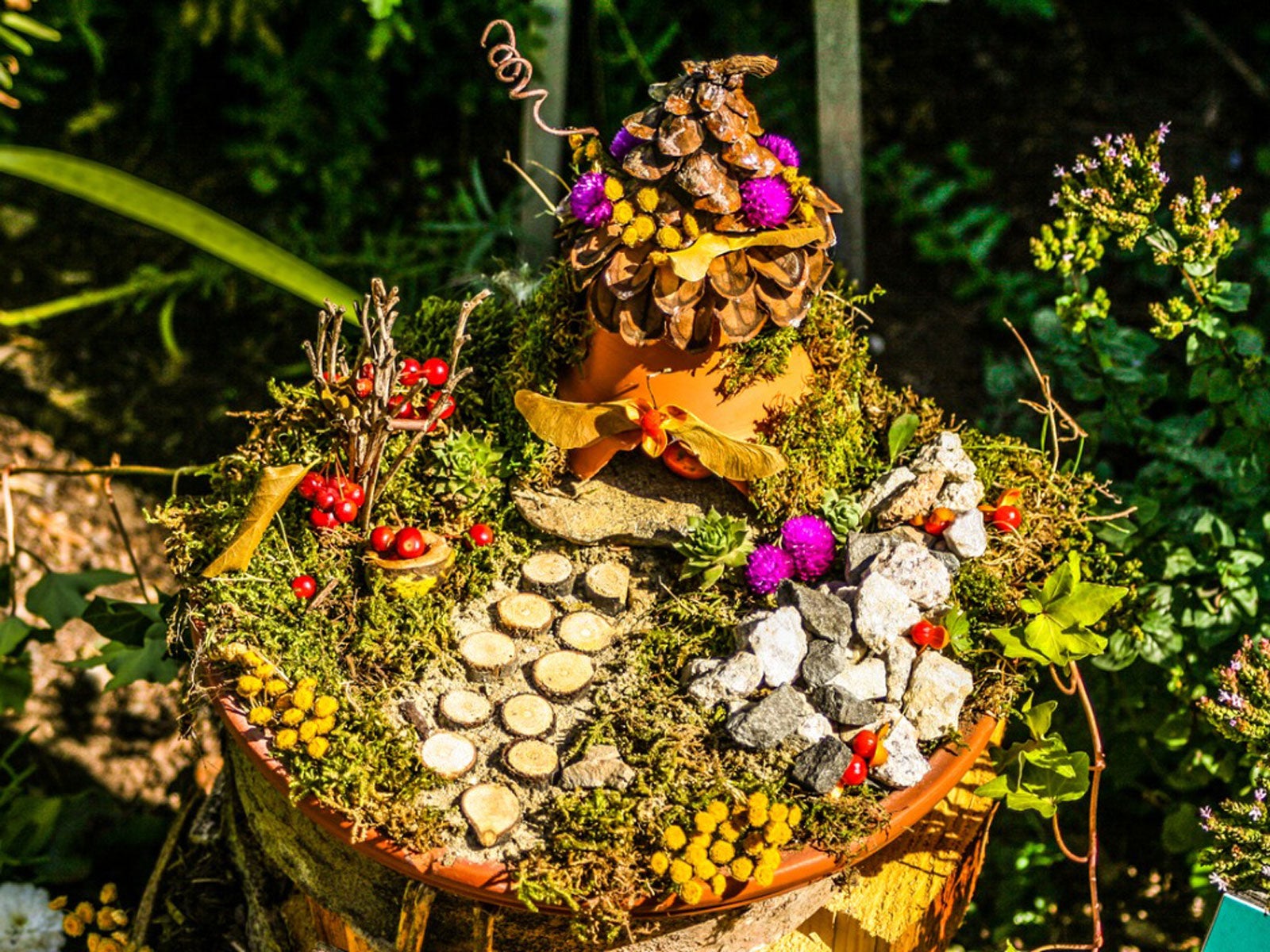 Decorare giardini fatati a tema autunnale