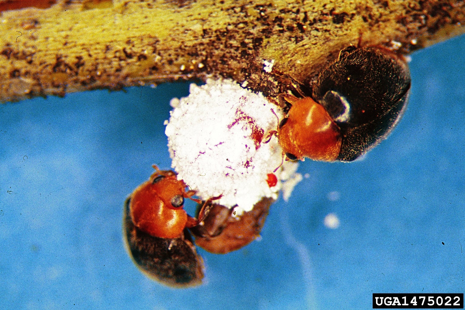 I coleotteri adulti che distruggono le cocciniglie sono più piccoli e principalmente di colore nerastro o marrone scuro, con testa e coda di colore marrone chiaro o arancione ruggine. Hanno un appetito sano e possono eliminare le cocciniglie abbastanza rapidamente. Possono deporre fino a 400 uova durante i loro due mesi di vita.