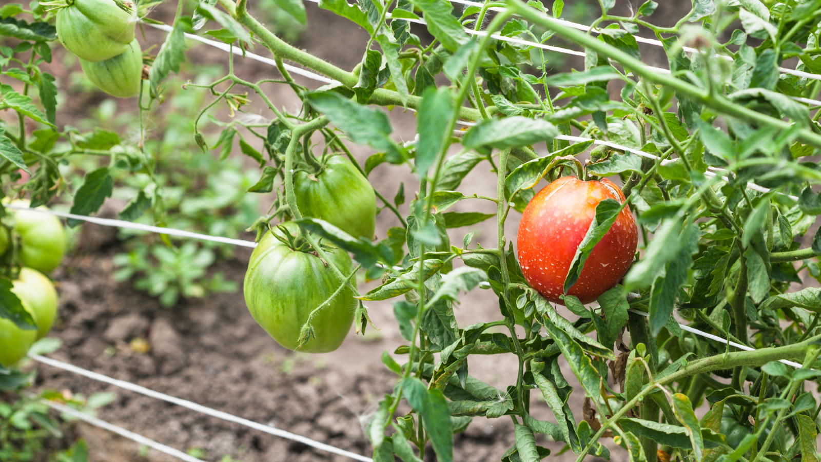 Una volta che i paletti sono stati posizionati e ben fissati nel terreno, piantate i pomodori presso ciascun paletto. Quando le piante raggiungono un’altezza di 30,48 cm, è il momento di potarle.