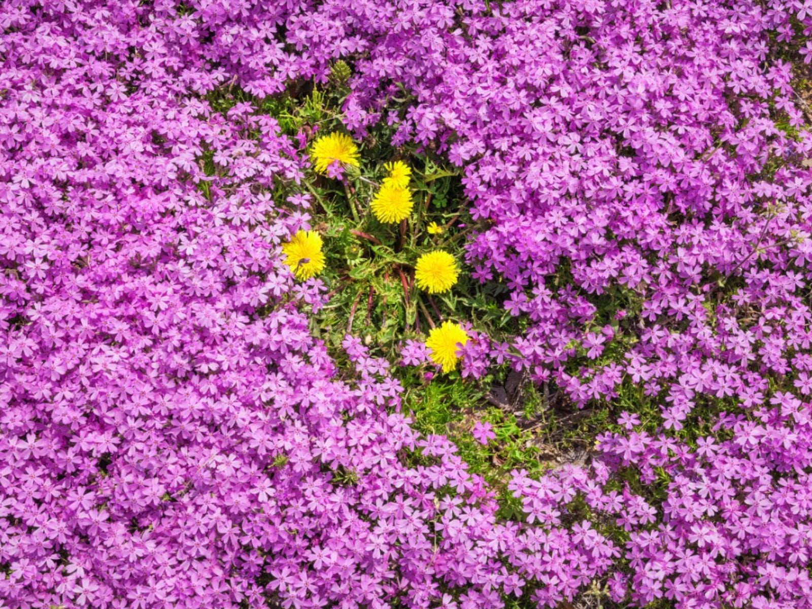 • Phlox strisciante (Phlox subulata) — fiori rossi, bianchi e lavanda in primavera, sempreverde. Zone 3-9