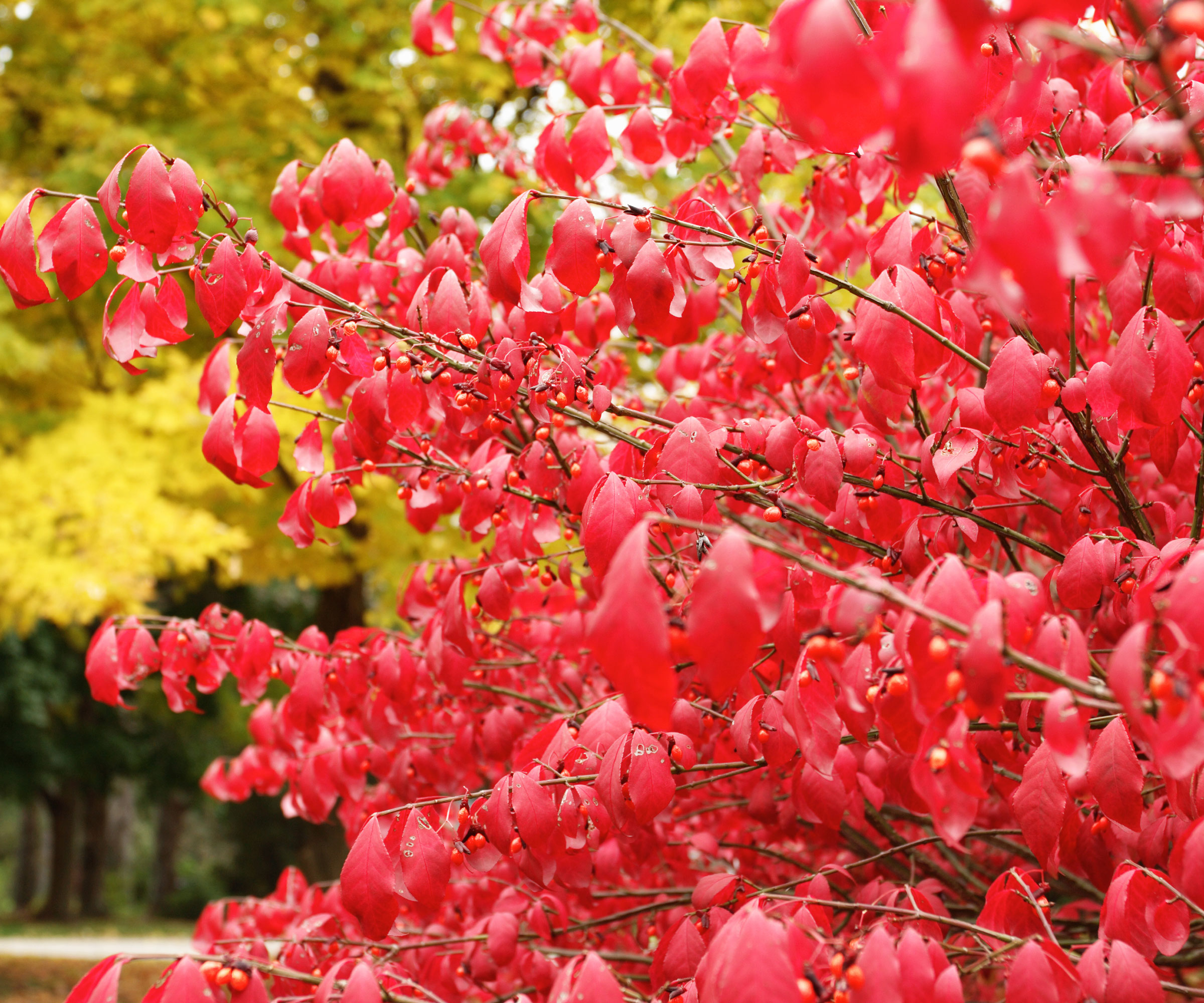 Il Burning Bush (Euonymus alata) è impareggiabile per le sue vivaci foglie autunnali di colore rosa acceso. Originario della Cina e del Giappone, il fuso alato o euonymus alato (come è anche conosciuto) sviluppa squisite tonalità magenta in autunno. I colori del cespuglio ardente vanno dal rosa al rosso, a seconda che siano piantati all’ombra o in pieno sole.