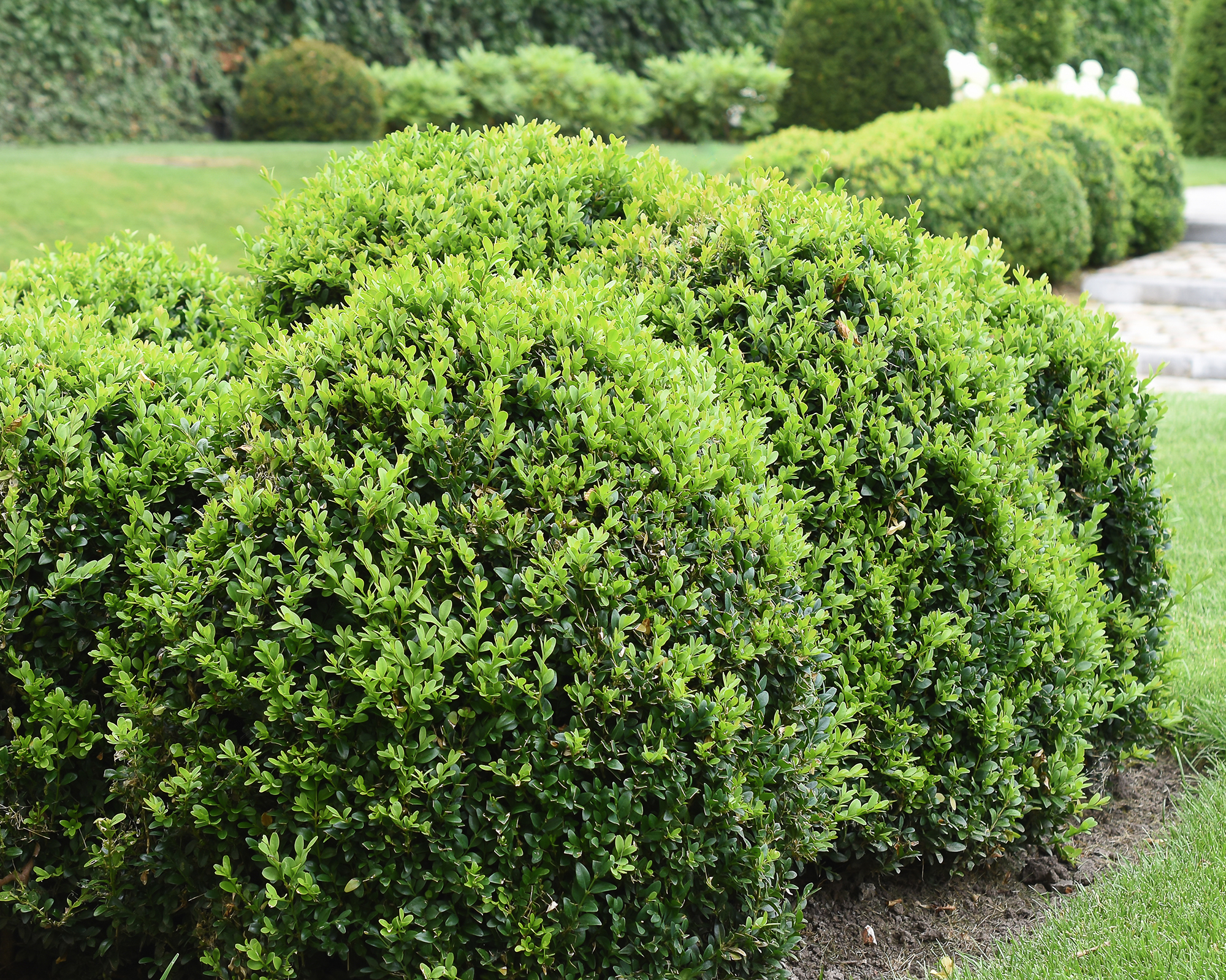 Gli arbusti di bosso hanno foglie piccole e arrotondate in forme super dense che potete potare in qualsiasi modo: bordi, sfere o qualsiasi forma formale o divertente desideriate. Questi arbusti di facile manutenzione richiedono pochissima potatura o lavoro una volta che avete ottenuto la dimensione e la forma desiderate.