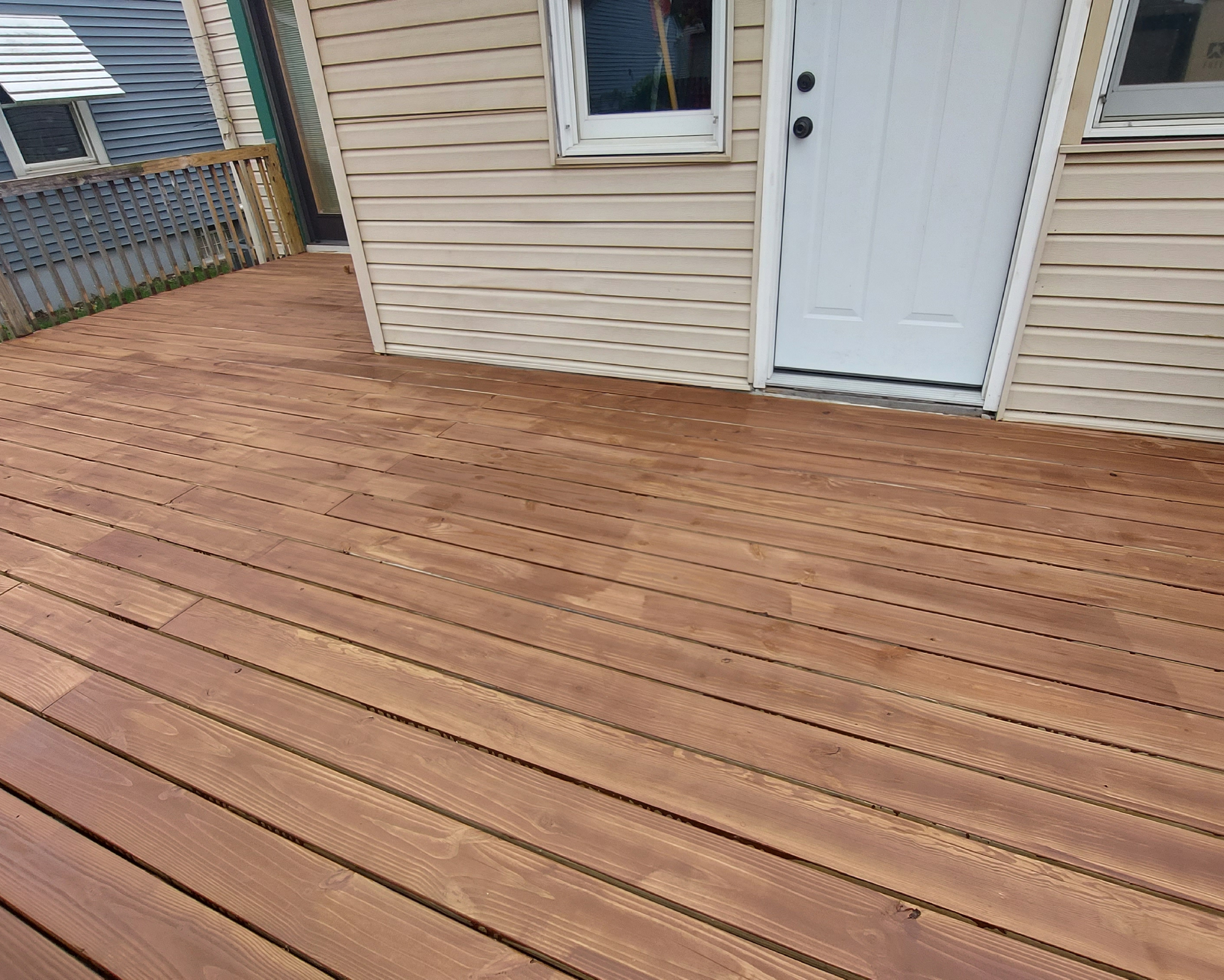 Non avrei dovuto aspettare un anno intero tra l’installazione del deck e la sua finitura. La mia procrastinazione ha permesso al legno di spaccarsi e ad alcune assi di arricciarsi a causa del gelo e del disgelo invernali. Il legno ha sofferto inutilmente e mi ha costretto a lavorare di più per prepararlo alla verniciatura successiva.