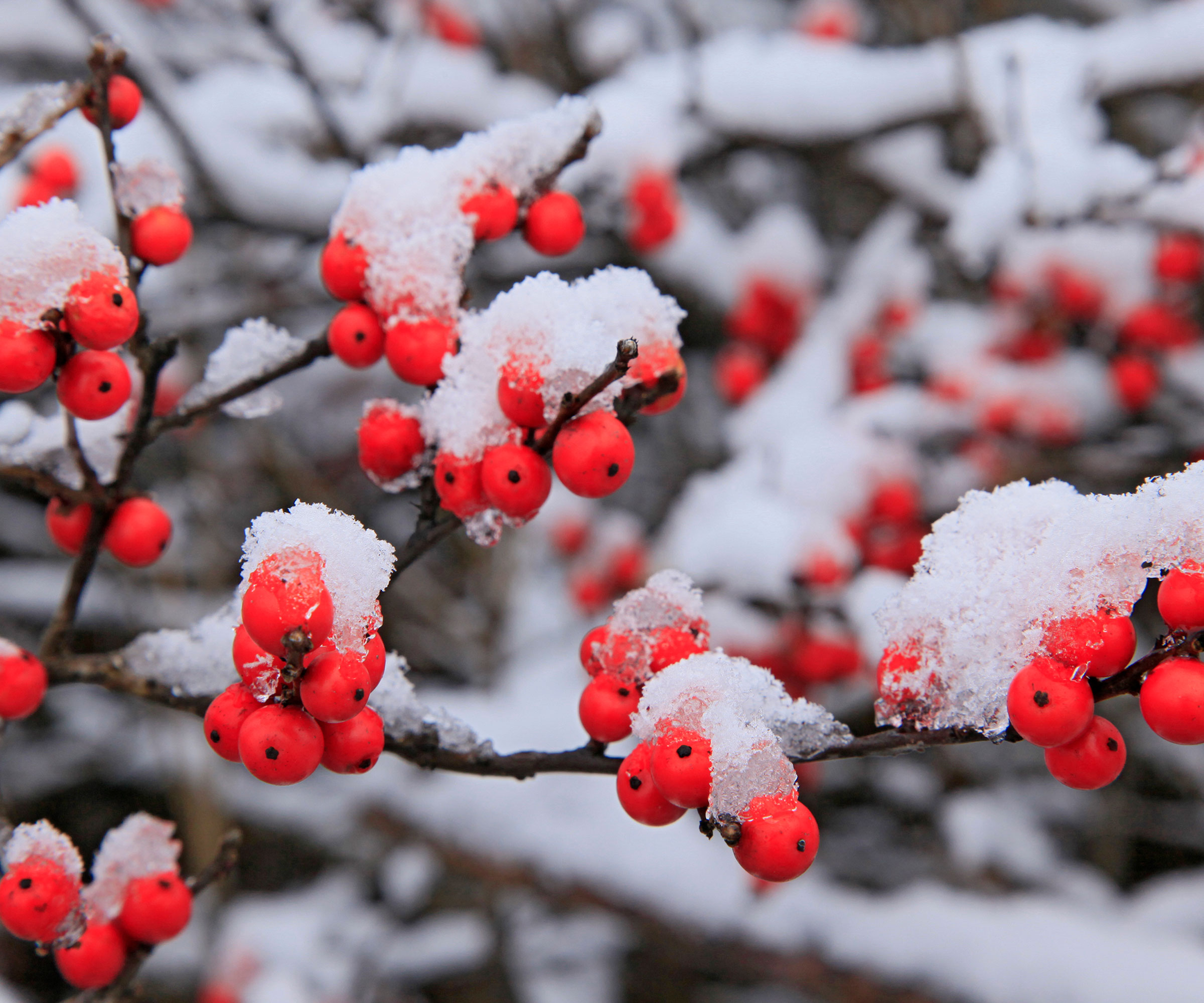 Tra le piante perenni resistenti al freddo, l’agrifoglio invernale (Ilex verticillata) è un arbusto estremamente attraente. Le sue foglie sono lucide e verdi tutto l’anno. In estate, gli alberi femminili sono ricoperti di piccoli fiori bianchi. Con l’avanzare della stagione, i fiori si trasformano in bacche rosso vivo che rimangono sull’albero per tutto l’inverno.