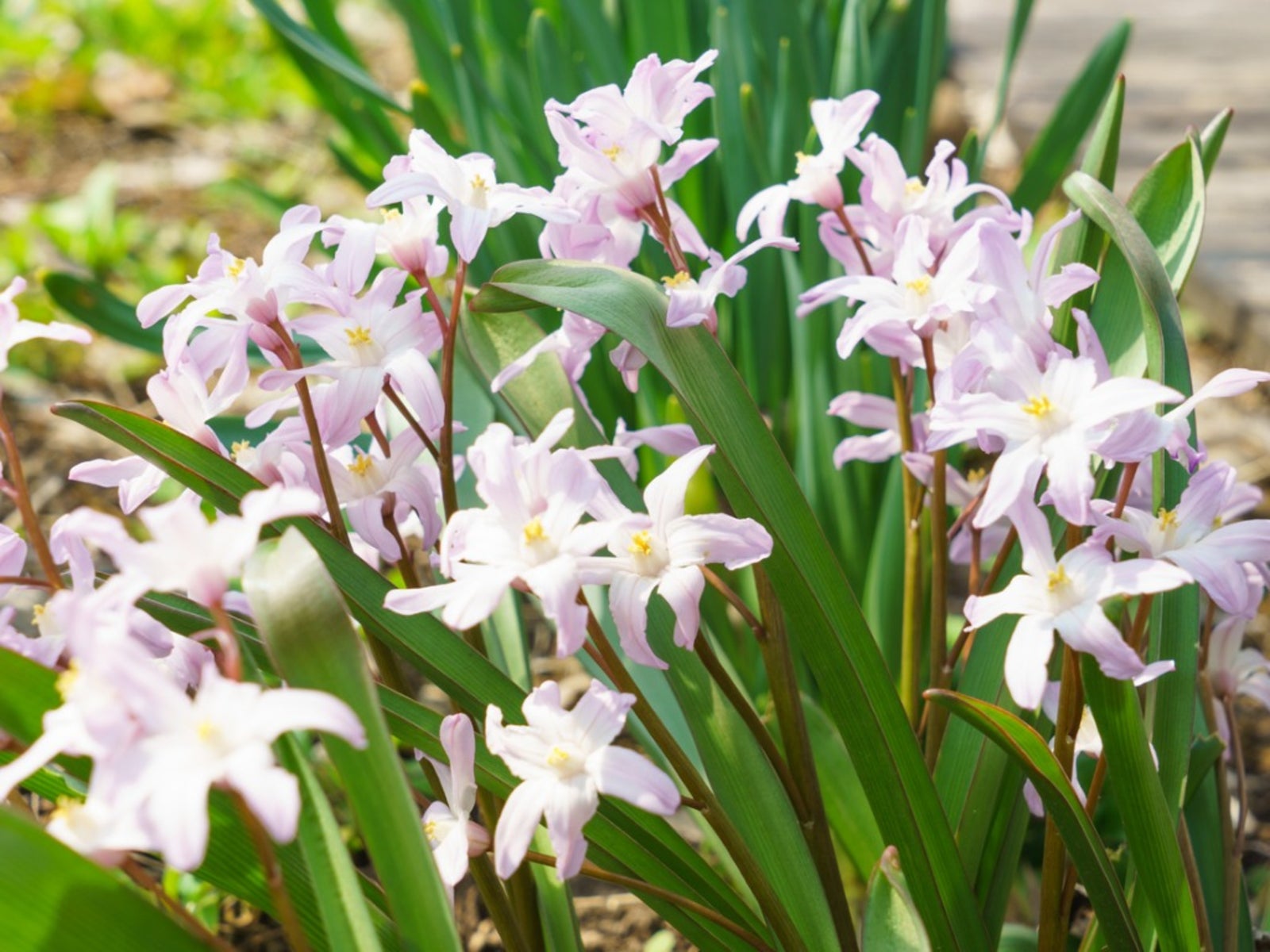 I bulbi della gloria delle nevi sono originari della Turchia. Producono una massa di graziosi fiori a forma di stella con foglie nastriformi di colore verde intenso. Ogni bulbo produce da cinque a dieci fiori su steli corti e spessi di colore marrone. I fiori hanno un diametro fino a 2 cm e sono rivolti verso l’alto, mostrando gola bianco crema. I bulbi di gloria delle nevi più comuni producono fiori blu, ma esistono anche cultivar bianche e rosa. I fiori finiscono di sbocciare tra la metà e la fine della primavera, ma il fogliame brillante persiste fino all’inizio dell’autunno. Le piante crescono fino a circa 15 cm di altezza e formano ciuffi che si diffondono nel tempo. La Chiondaxa è resistente nelle zone USDA da 3 a 8. Piantate i vostri bulbi a fioritura primaverile in autunno. Potete utilizzare queste piante come accenti nelle fioriere o nei vasi primaverili, nei giardini rocciosi, lungo i sentieri o nei primi giardini perenni.