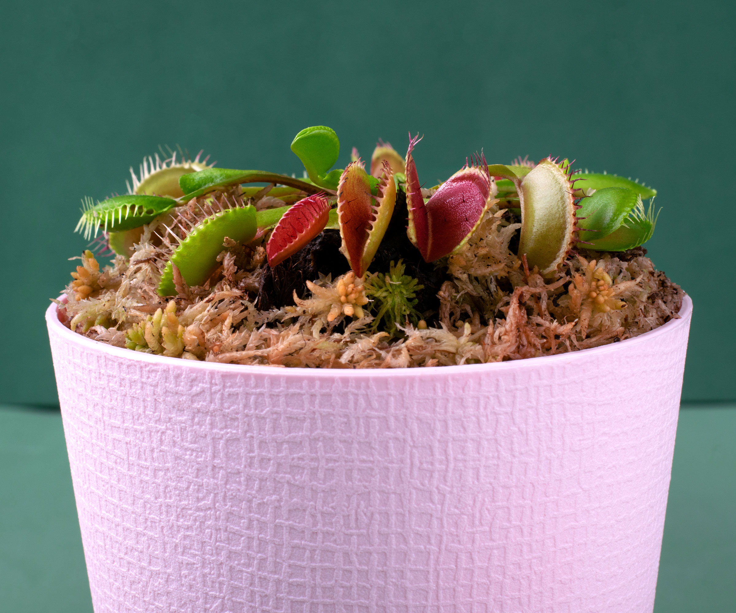 Queste classiche piante carnivore da coltivare in casa sono originarie delle Caroline, nella zona costiera. Queste piante hanno bisogno di luce intensa, acqua filtrata, distillata o piovana e una fonte di cibo naturale. Per una cura soddisfacente della Venere acchiappamosche, fornite almeno sei ore al giorno di luce solare o utilizzate una lampada per piante se la vostra casa è poco luminosa. Il substrato di coltivazione dovrebbe essere composto per metà da sfagno o torba mista a sabbia orticolturale.