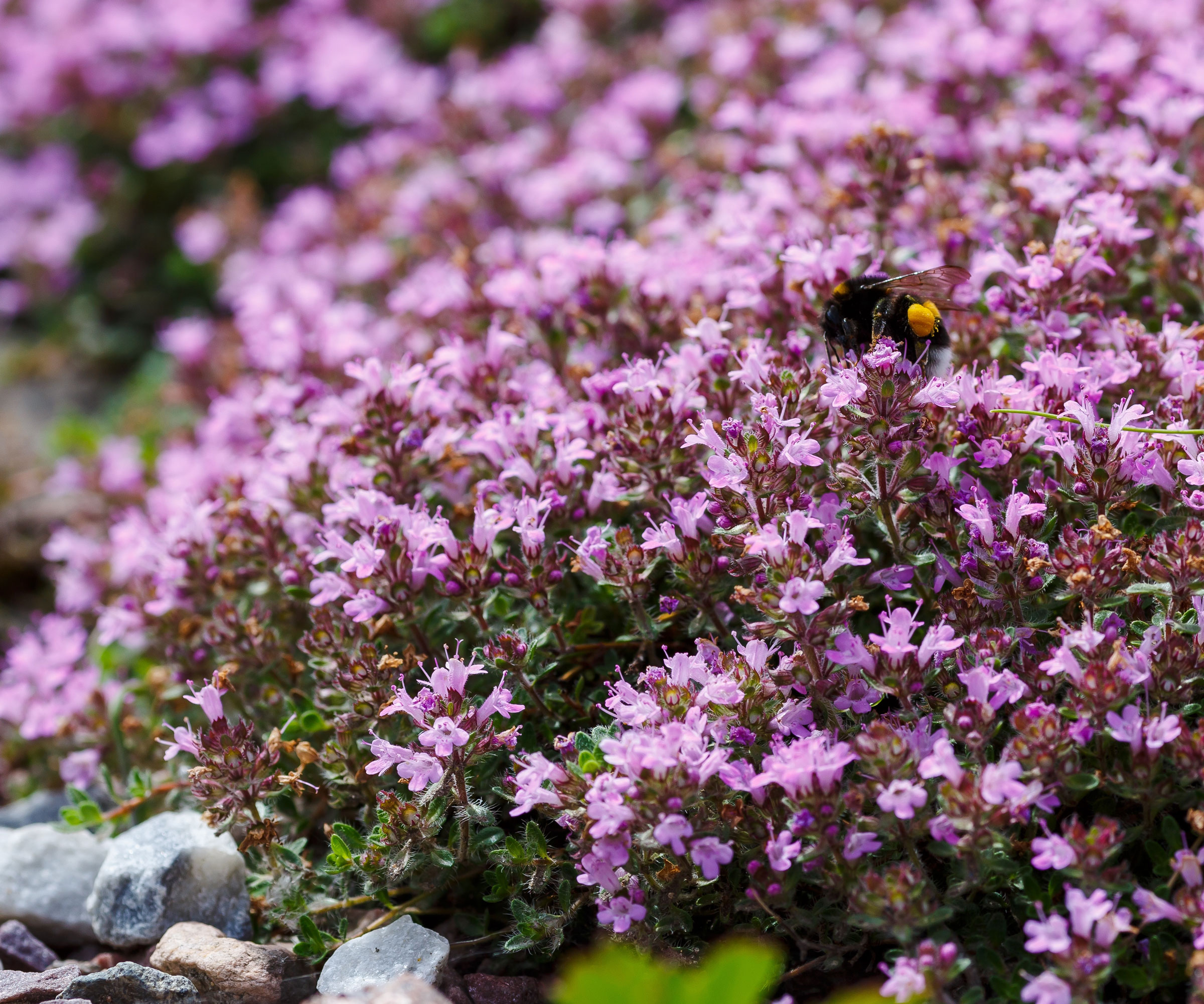 Resistente nelle zone 4-9, a seconda della varietà, il timo può sopportare gelate leggere e fornisce un bordo rampicante e sempreverde che ammorbidisce l’aspetto del vaso. Si abbina perfettamente anche alla preferenza del pelargonio per un terreno ben drenante e una buona esposizione al sole.