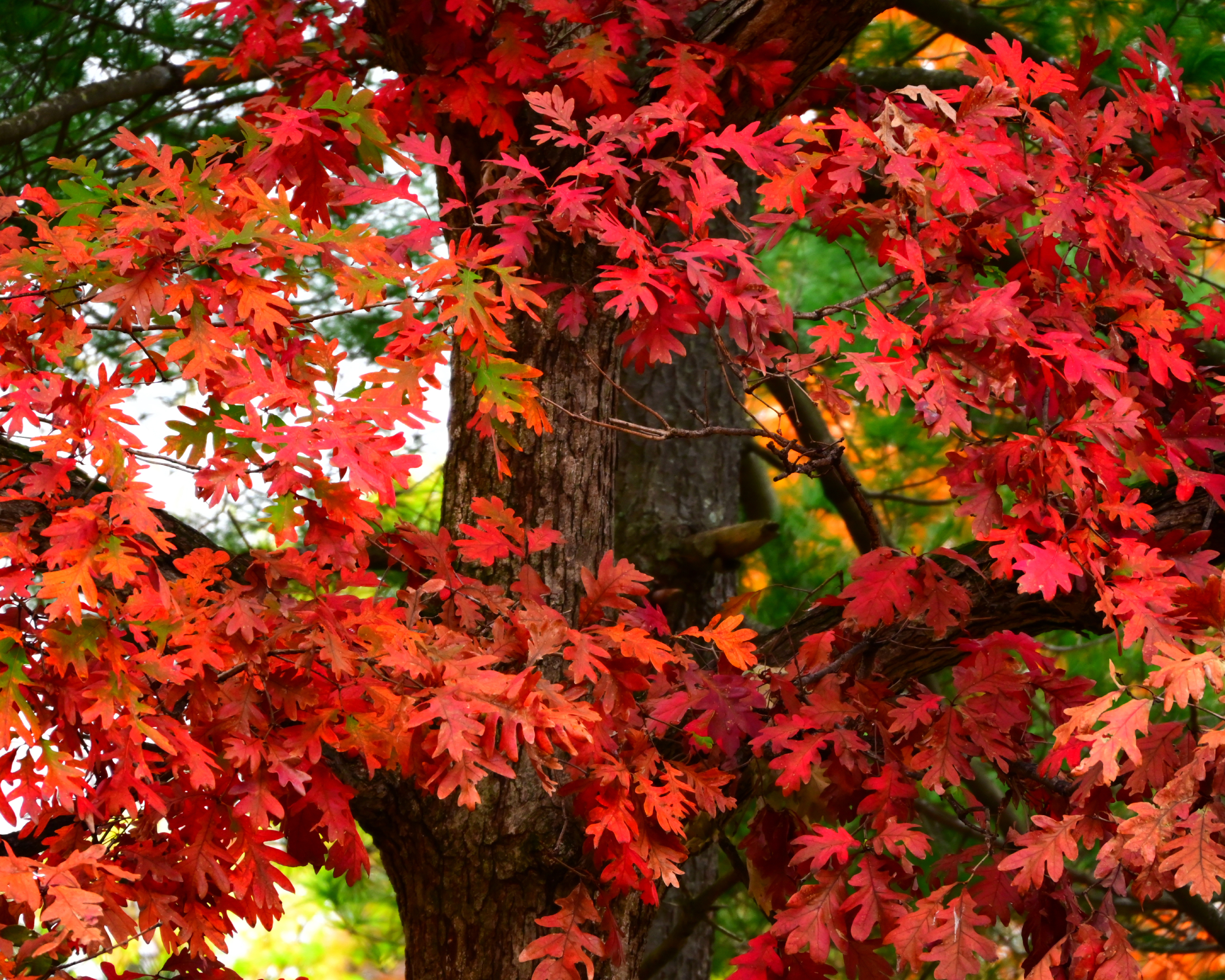 L’ultima specie nella mia lista degli alberi luminosi preferiti: la quercia rossa. Le Quercus rubra sono infuocate, a crescita rapida e originarie del Nord America orientale. (Ho conosciuto questo albero anche durante i miei anni a Washington D.C.). Né le foglie né il tronco degli alberi sono rossi: dovrete avere pazienza per capire da dove deriva il suo nome comune. Ma, quando arriva l’autunno, non ci sono dubbi. In autunno gli alberi sembrano in fiamme, poiché le chiome assumono un colore rosso brillante.