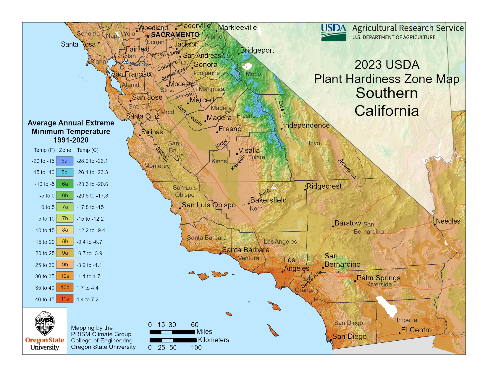 Scopri di più sulla mappa delle zone di rusticità USDA per piante e alberi in California