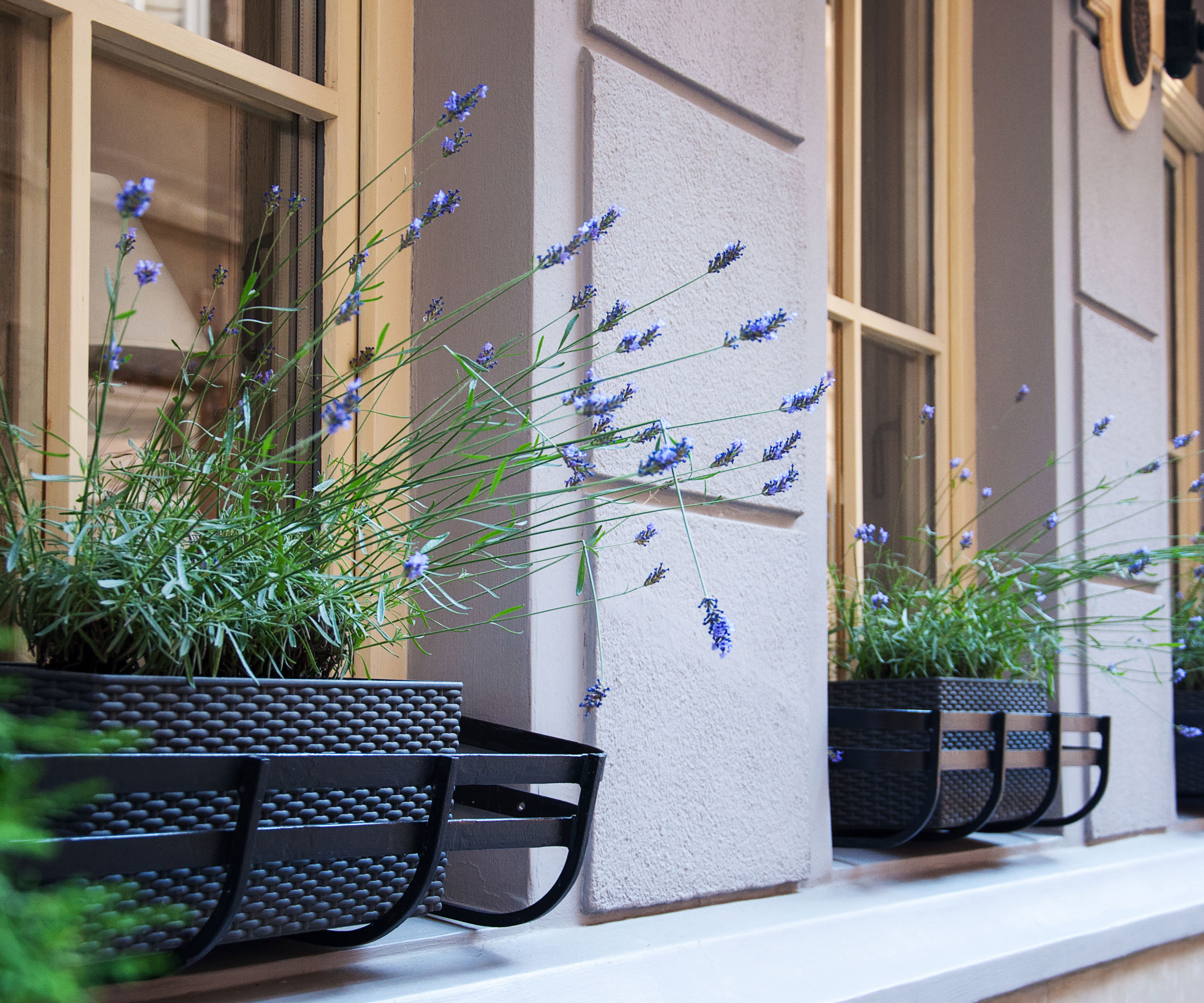Förutom att använda höjd för att lyfta upp växterna i ljuset kan du också öka mängden naturligt ljus med hjälp av ett par smarta planteringsstrategier på marken. Om du odlar lavendel i markbaserade krukor, se till att placera krukorna (och enskilda växter) på bra avstånd från andra växter, särskilt högre växter (som kastar mer skugga). Trappsteg är utmärkta för krukor, men försök att undvika att placera lavendel på lägre trappsteg, eftersom de då kommer att konkurrera om ljuset på ett annat sätt.