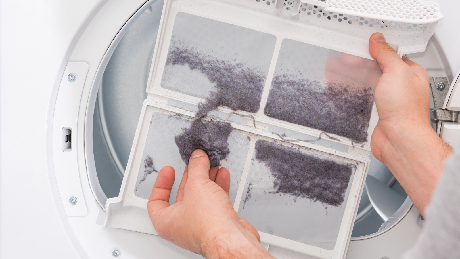 Först kommer tvättmaskinen, sedan torktumlaren. När torktumlaren kastar runt rena, våta kläder för att torka dem, samlas ludd i en fälla som är inbyggd i maskinen. Denna luddiga ansamling är en samling av små bitar av klädtyg, människohår och djurhår.
