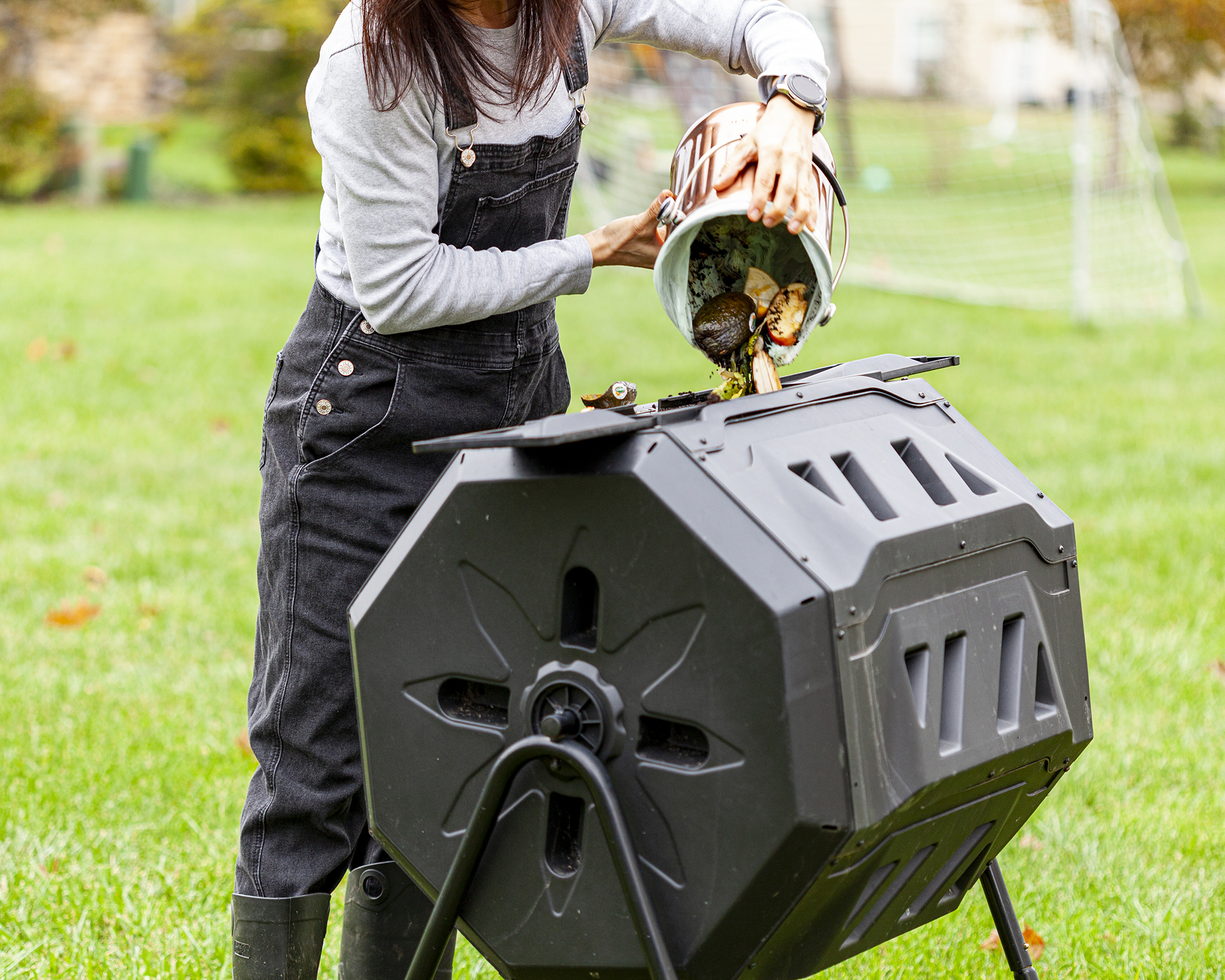 Funderar du på att starta en kompostbehållare eller komposthög i din trädgård? Den allmänna anvisningen är att lägga grönt material, som grönsaksskal, och brunt material, som torra löv, i lager som en lasagne. Eller så kan du använda en kompostbehållare som denna bästsäljare från Amazon för att göra det extra enkelt.