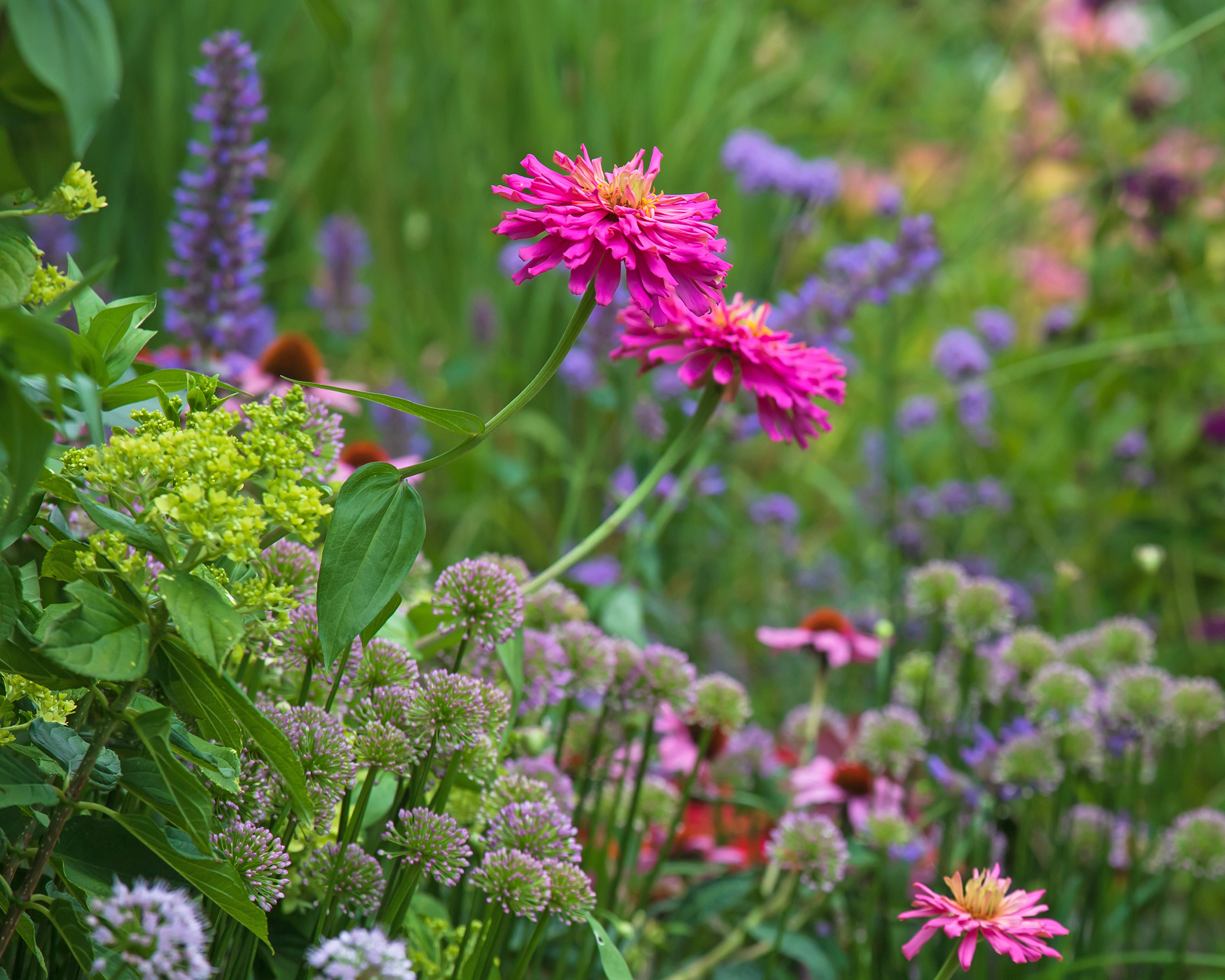 Mellan sensommaren och tidig höst börjar kolibrier att migrera söderut. Därför är det viktigt att ha växter i din trädgård som kan ge dem näring under denna period. Två av de bästa blommorna för kolibrier under denna tid är zinnias och agastache. Detta dynamiska duo blommar inte bara vid rätt tidpunkt för att ge migrerande kolibrier välbehövlig nektar, utan de ser också fantastiska ut tillsammans i rabatter och kantrabatter. Färgglada zinnias ger en stark bas, medan agastache – även känd som kolibrimynta – tillför vertikal kontrast och doft.