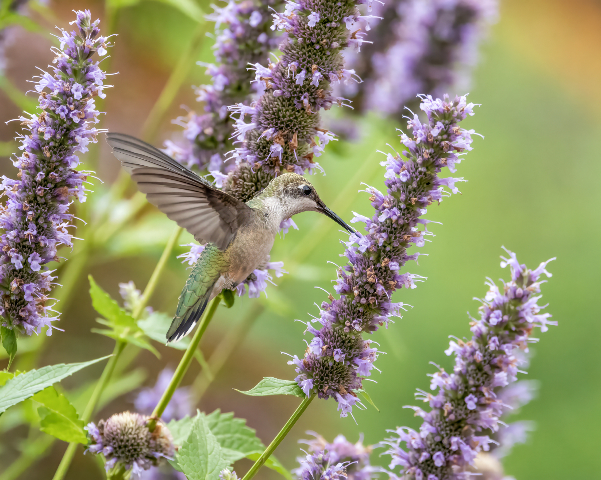 Agastache, allmänt känd som kolibrimynta eller isop, har livfulla, rörformiga blommor fyllda med nektar, vilket gör den till en magnet för kolibrier. Den blommar från midsommar till höst och ger en långvarig födokälla som lockar inte bara kolibrier utan också bin och fjärilar. Ändå är den hjortresistent.