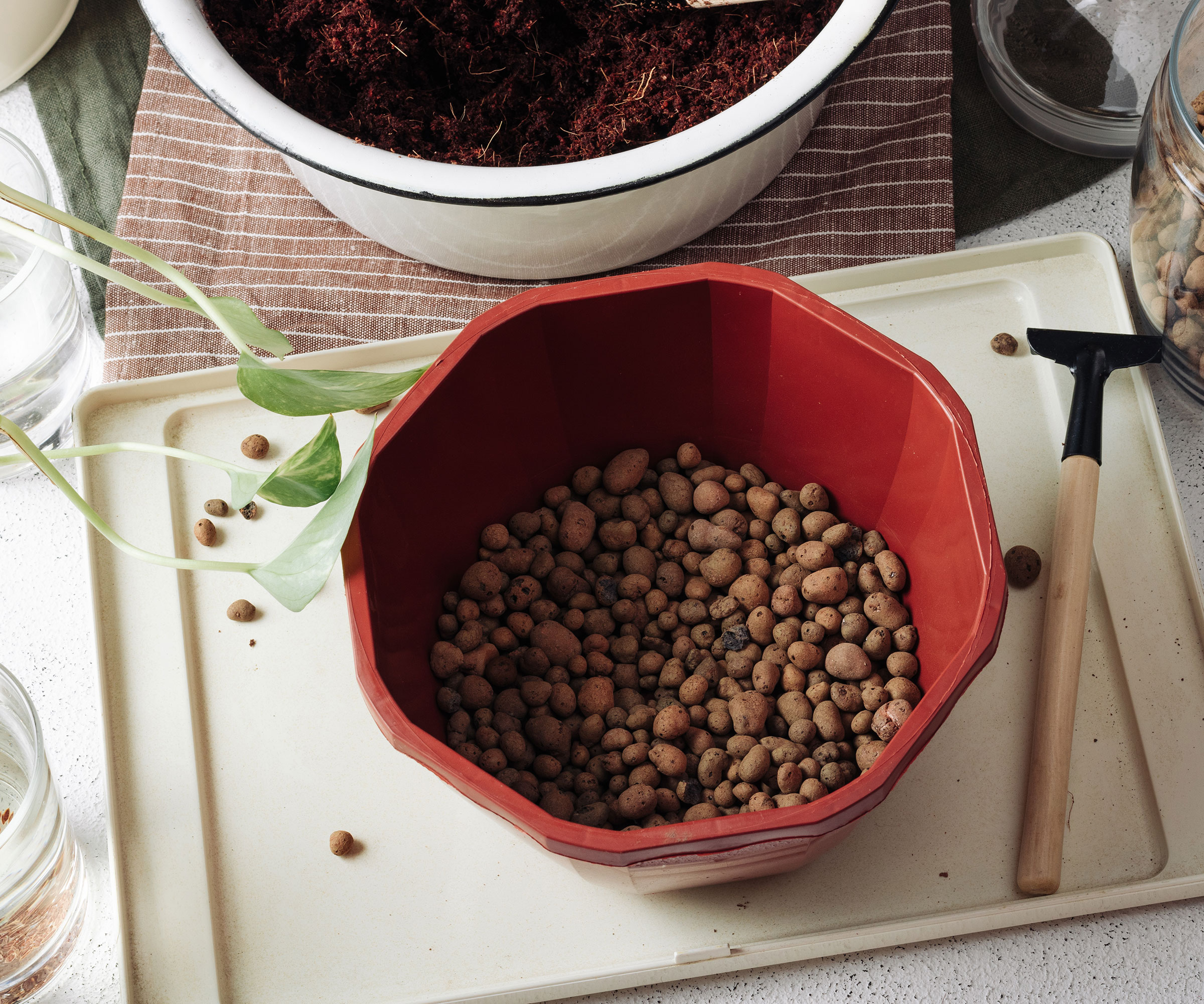 Många trädgårdsmästare brukade förespråka att man skulle fylla botten av planteringskärl med stenar för att ”förbättra dräneringen”. Men detta välmenande råd har faktiskt motsatt effekt. Att fylla krukor med material som stenar, frigolit eller *host* Diet Coke-burkar gör att vattnet samlas högre upp i krukan, där planteringsjorden möter fyllnadsmaterialet.