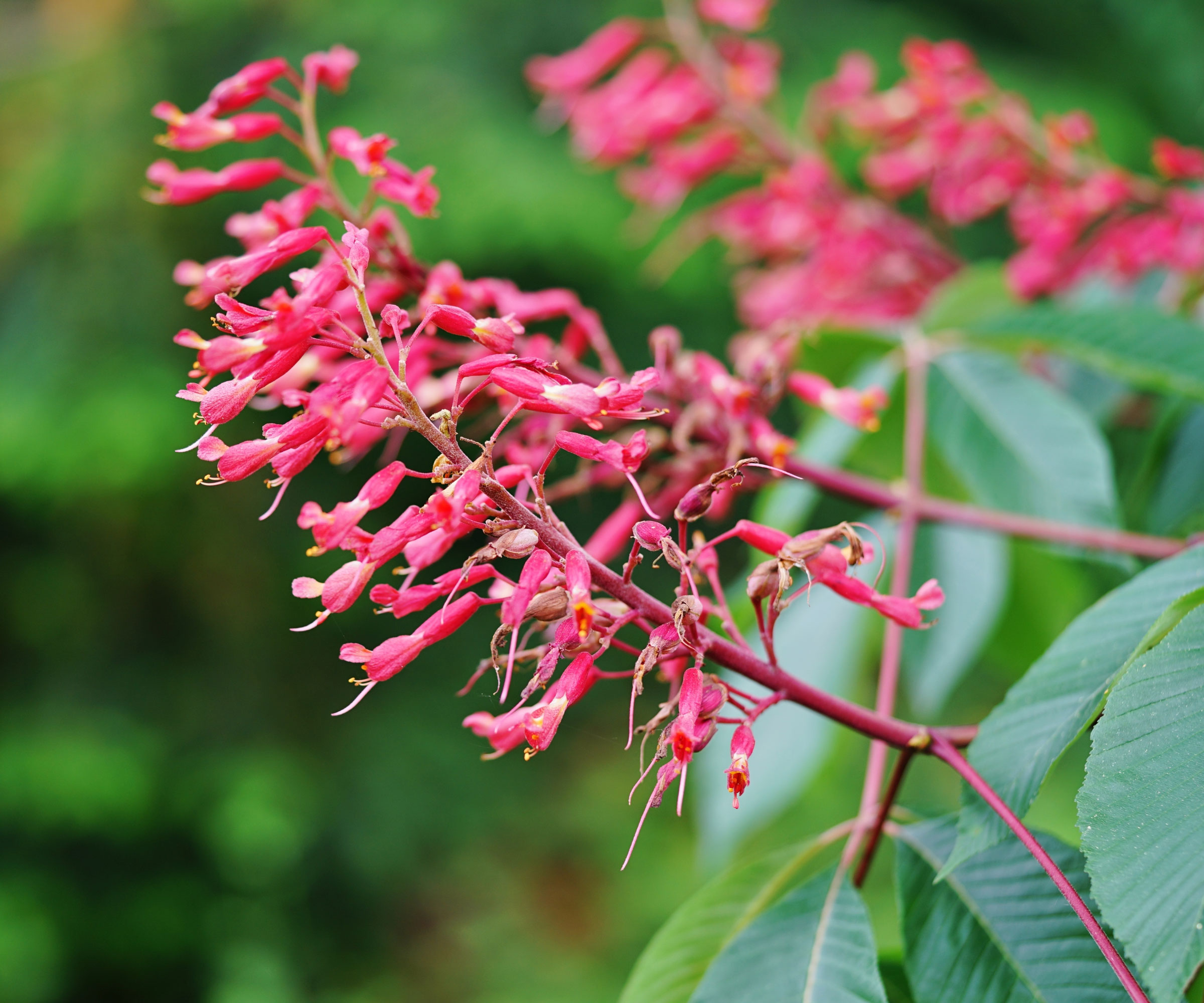 Röd hästkastanj (Aesculus pavia) är en av de bästa blommande inhemska växterna för skugga – och bonusen är att den är mycket attraktiv för kolibrier. Detta lövfällande inhemska träd kan nå en höjd på 7,6 m om det hålls i ett svalt, delvis skuggigt hörn.