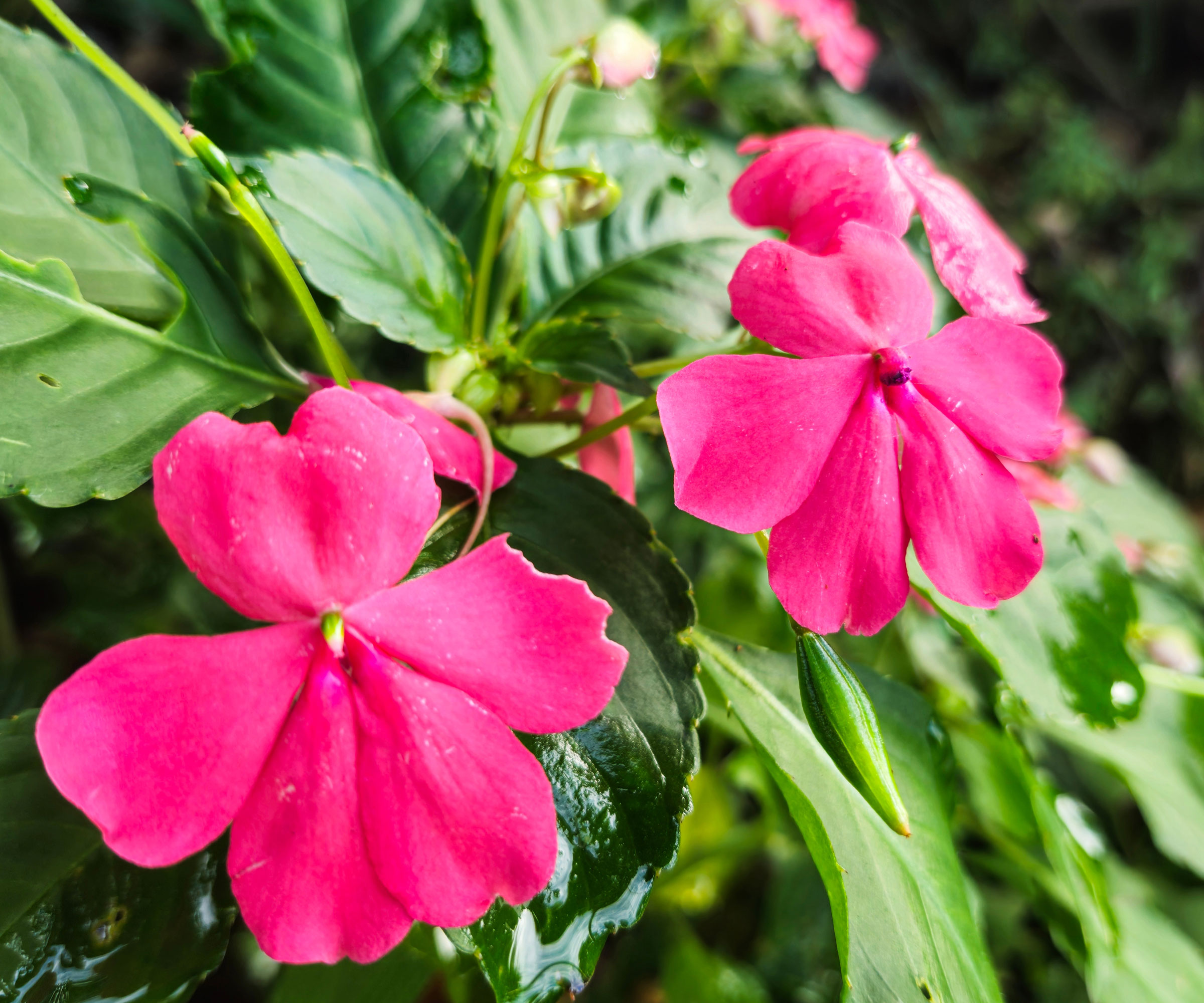 Dessa ettåriga rabatt- eller krukväxter bildar högar av färgglada enkla eller dubbla blommor. Du kan hitta impatiensväxter (I. walleriana) som utvecklar blommor i nyanser av laxrosa, orange, rosa, vitt och rött. De blommar från våren till frosten.