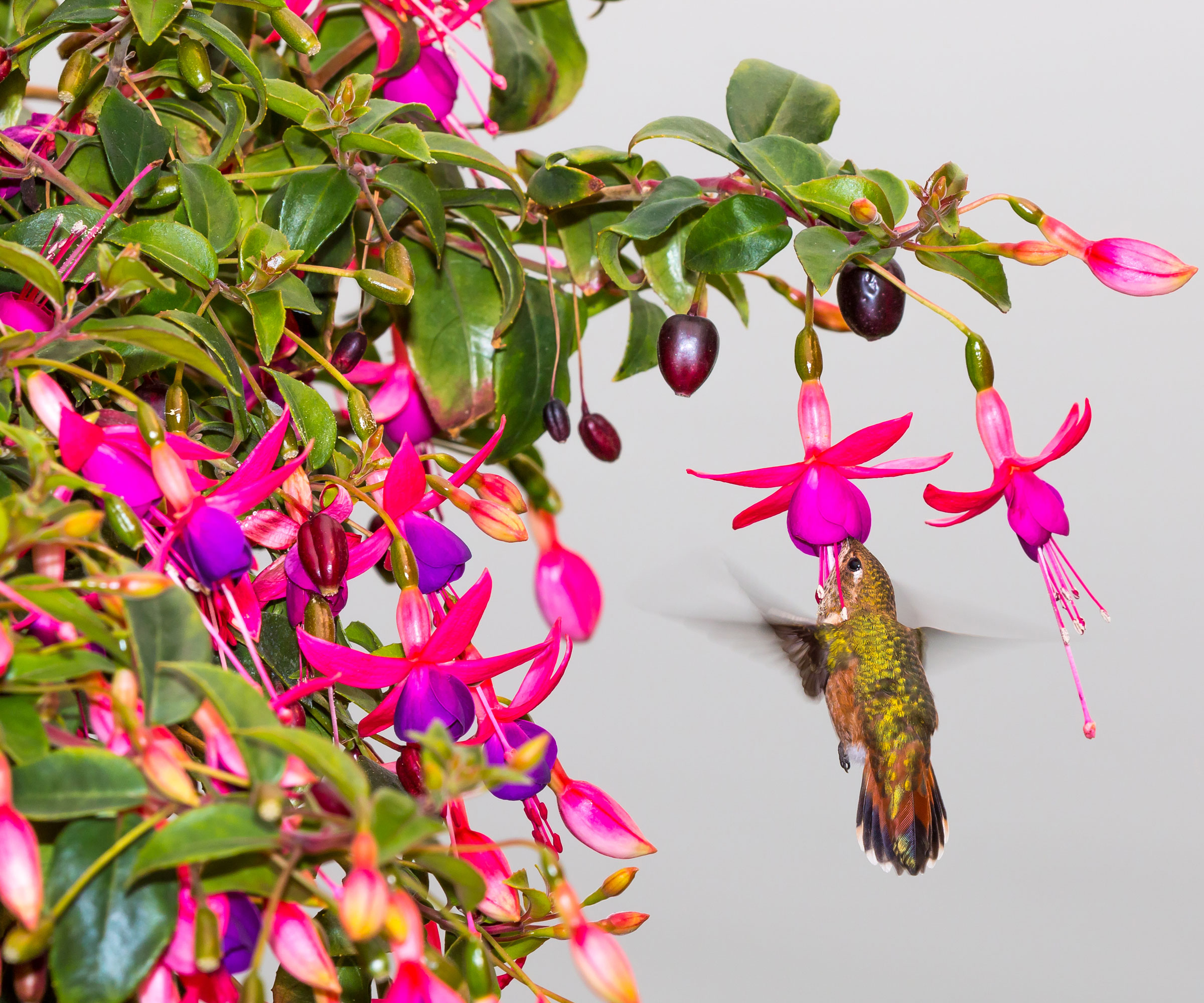 De bästa skuggälskande växterna har färgglada rörformade blommor för kolibrier. Dessa kan vara röda, gula, rosa, lila och orange. Förutom näringen från blommornas nektar äter kolibrier också insekter och spindlar på växterna. Träd och buskar ger skydd och vila mellan måltiderna och, om du har tur, en plats att bygga bo! Ta därför hänsyn till allt detta i dina planteringsplaner för att locka kolibrier.