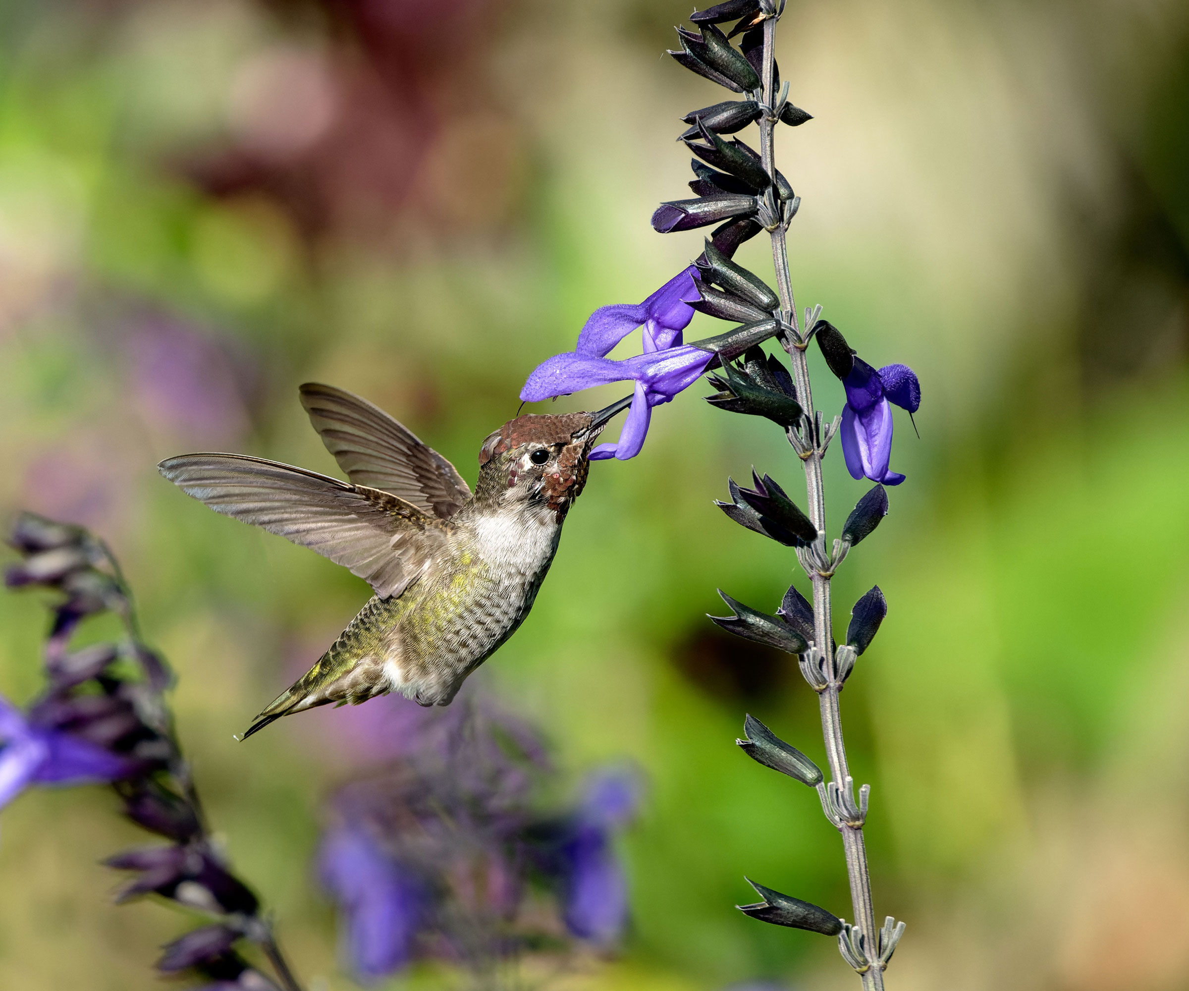 Det finns några utmärkta salvia-sorter för lugna hörn, men en särskilt bra sort för kolibrier på sommaren är ’Black and Blue’. Odla salvia i USDA-zonerna 7-10 för den längsta växtsäsongen och färgskalan.