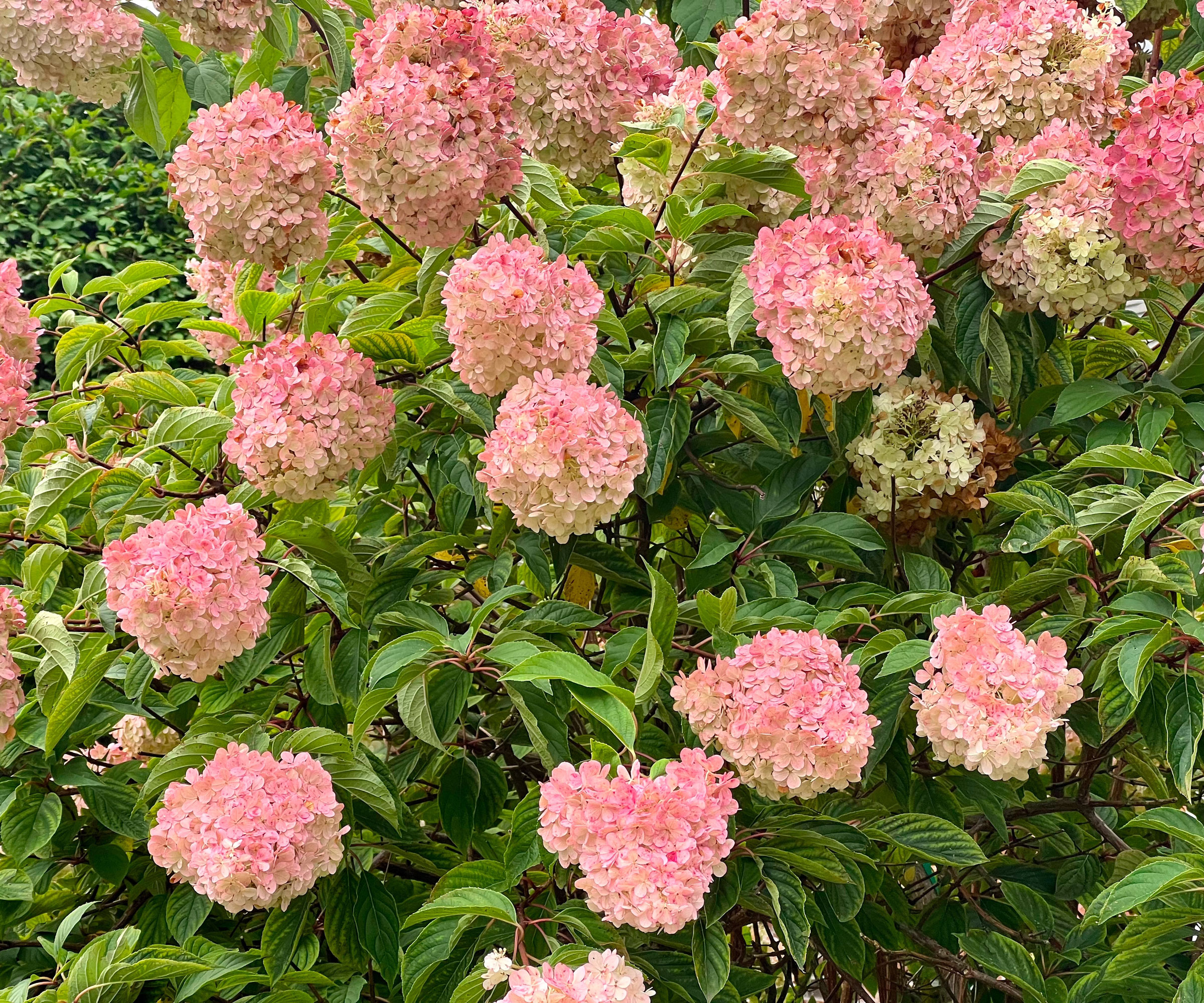 Om du inte är säker på vilken färg på hortensia du gillar bäst, erbjuder en Vanilla Strawberry-hortensia (även känd som Vanille Fraise-hortensia) en vacker blandning av rosa och vitt. Denna hortensia har konformade blommor som slår ut i juli, med slående blommor som ändrar färg när de mognar.