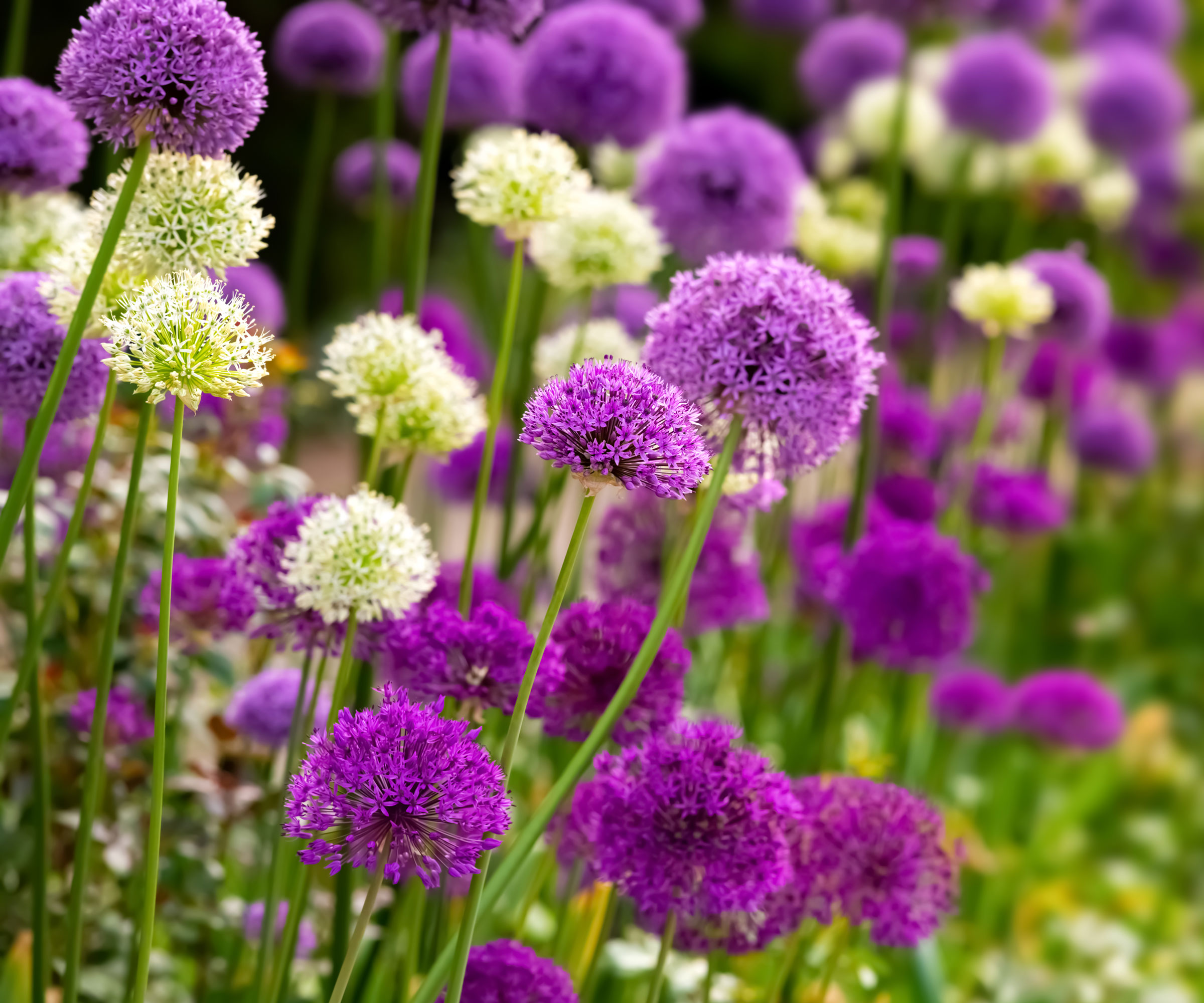 Alliumväxter avger en skarp lökdoft på grund av allicin och svavelföreningar som ekorrar inte tål. Deras papperstunna skal är svåra att tugga igenom. Dessa växter, som blommar från sen vår till tidig sommar, skjuter upp stora lila eller vita klot, cirka 0,6–1,2 meter höga, som lockar bin som ingen annan.