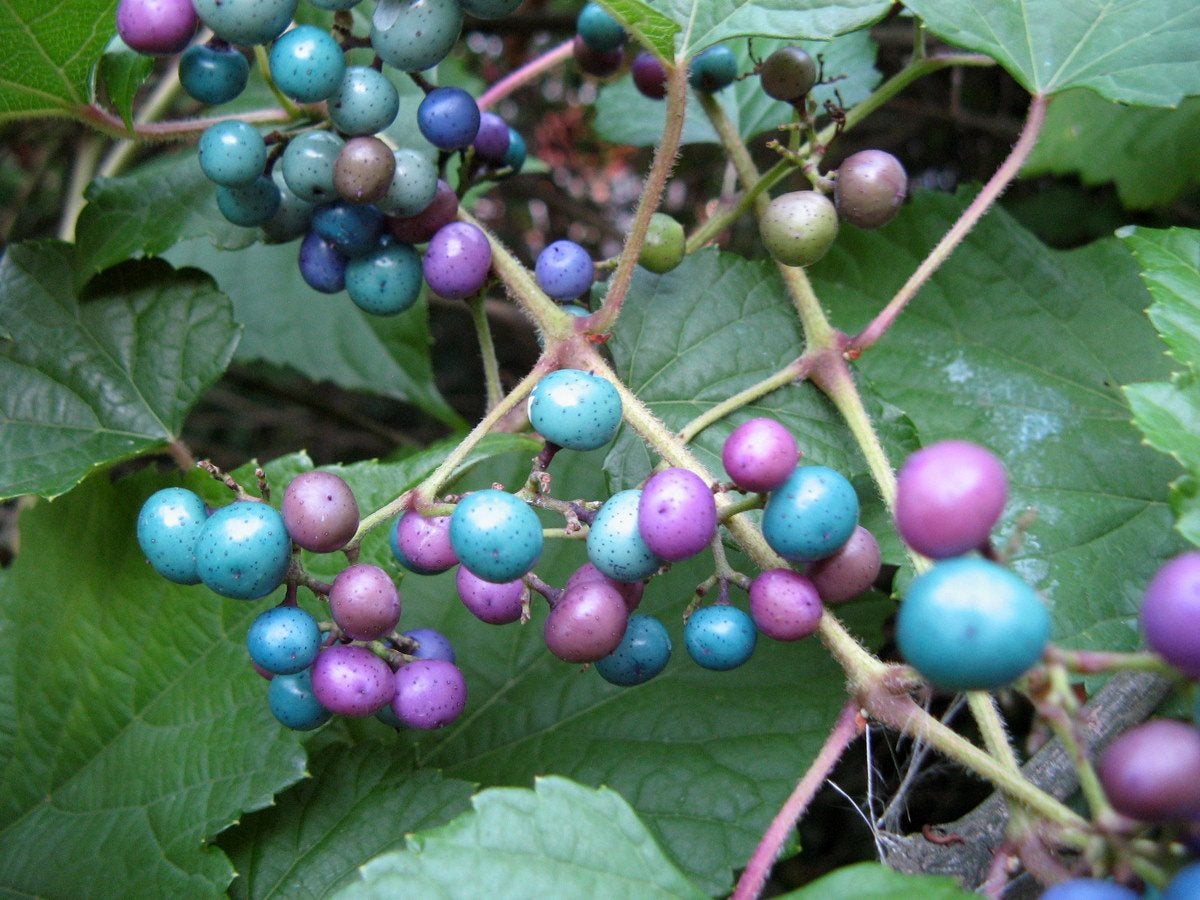 Porslinsvinrankor är nära besläktade med vindruvor, och precis som vindruvor odlas de mer för sina frukter än för sina blommor. Denna lövfällande vinranka har tät, frodig lövverk från vår till höst. Porcelänvinrankor växer snabbt och ger ett snabbt täckande över tak och spaljéer. Växten kallas också porcelänbärvinranka (Ampelopsis brevipedunculata) och producerar kluster av intressanta bär en gång under sensommaren och hösten. Bären är vita till en början, men mörknar gradvis till nyanser av rosa, lavendel, turkos, blått och svart när de mognar. Varje kluster kan ha bär i flera olika färger. Fåglar och ekorrar älskar bären, men människor tycker att de är oätliga.